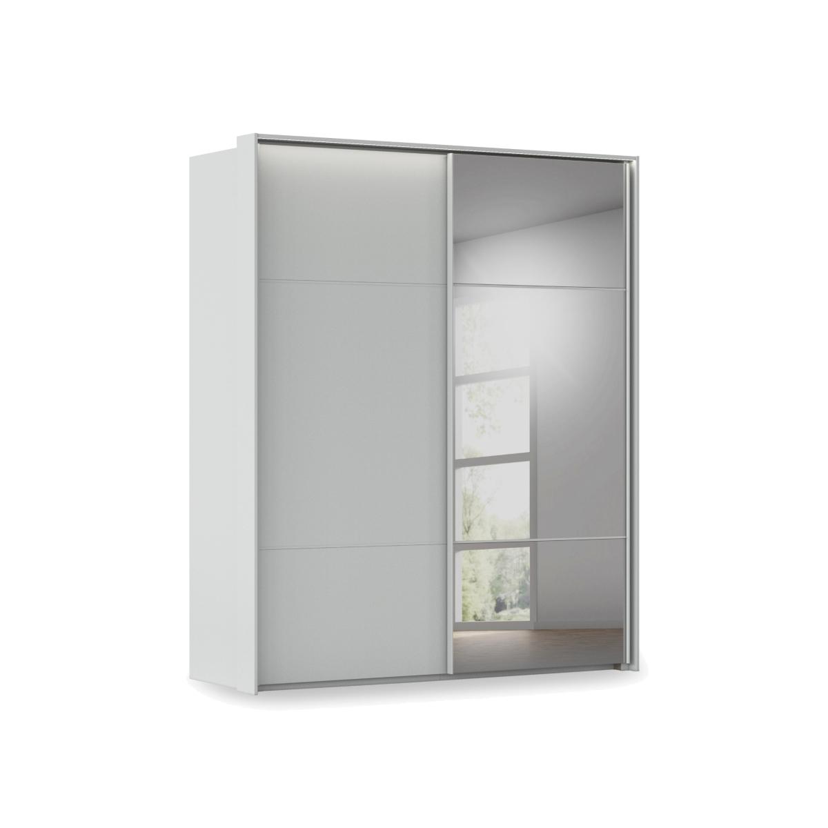 Sleek, modern and minimal, this two- door sliding wardrobe makes it easy to create a bedroom that’s a haven of calm and relaxation. With remote- controlled LED lights and a mirror door and in a choice of colours for the décor finish. Why you'll love it Enjoy minimal style and maximum storage with our Rauch Haven range. Sleek and modern, this 190 cm 2- door slider wardrobe helps you create a calm, clutter- free bedroom. The décor frame and door are available in a choice of fashionable colours. Seamless full- height door pull. Mirror door has a subtle grey tint. Remote- controlled exterior LED lighting. Soft- closing doors. Well- designed storage space with 2 shelves and a hanging rail in each wardrobe section. Customise your wardrobe with drawer units, storage dividers, extra shelves and more. Made in Germany. Exclusively at Furniture Village. This 2- door slider wardrobe is part of our Rauch Haven range. What you need to know Delivered, assembled and installed for you free of charge. Standard internal storage comprises 2 adjustable shelves and 1 adjustable hanging rail per compartment. Drawer units, compartment dividers, LED lights and extra shelves and hanging rails are available for this wardrobe at an additional cost. Dust with a lint- free cloth. Do not use silicone- based furniture polishes. You’ll find a huge choice of wardrobes, chests of drawers and more in our Rauch Haven range. WARNING! Furniture can tip over unexpectedly and cause injury. This item must be fixed to a wall using the anti- tip kit provided. Be sure to use the correct wall fixings suitable for the walls in your home. Furniture Village is not able to fix anti- tip devices for you. Seek professional advice if you are unsure.