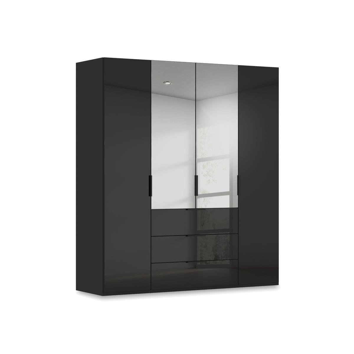 Sleek, modern and minimal, this four- door combi wardrobe makes it easy to create a bedroom that’s a haven of calm and relaxation. With two mirror doors and in a choice of colours for the frame and matching glass doors. Why you'll love it Enjoy minimal style and maximum storage with our Rauch Haven range. Sleek and modern, this 4- door combi wardrobe helps you create a calm, clutter- free bedroom. The décor frame and glass doors are available in a choice of fashionable colours. Mirror doors have a subtle grey tint. Well- designed storage space with 3 drawers, 2 shelves and a hanging rail in each wardrobe section. Stylishly elongated door and drawer handles. Soft- closing doors and drawers. Customise your wardrobe with drawer units, storage dividers, extra shelves and more. Made in Germany. Exclusively at Furniture Village. This 4- door combi wardrobe is part of our Rauch Haven range. What you need to know Delivered, assembled and installed for you free of charge. Standard internal storage comprises 2 adjustable shelves and 1 adjustable hanging rail per compartment. Drawer units, compartment dividers, LED lights and extra shelves and hanging rails are available for this wardrobe at an additional cost. Dust with a lint- free cloth. Do not use silicone- based furniture polishes. You’ll find a huge choice of wardrobes, chests of drawers and more in our Rauch Haven range. WARNING! Furniture can tip over unexpectedly and cause injury. This item must be fixed to a wall using the anti- tip kit provided. Be sure to use the correct wall fixings suitable for the walls in your home. Furniture Village is not able to fix anti- tip devices for you. Seek professional advice if you are unsure.
