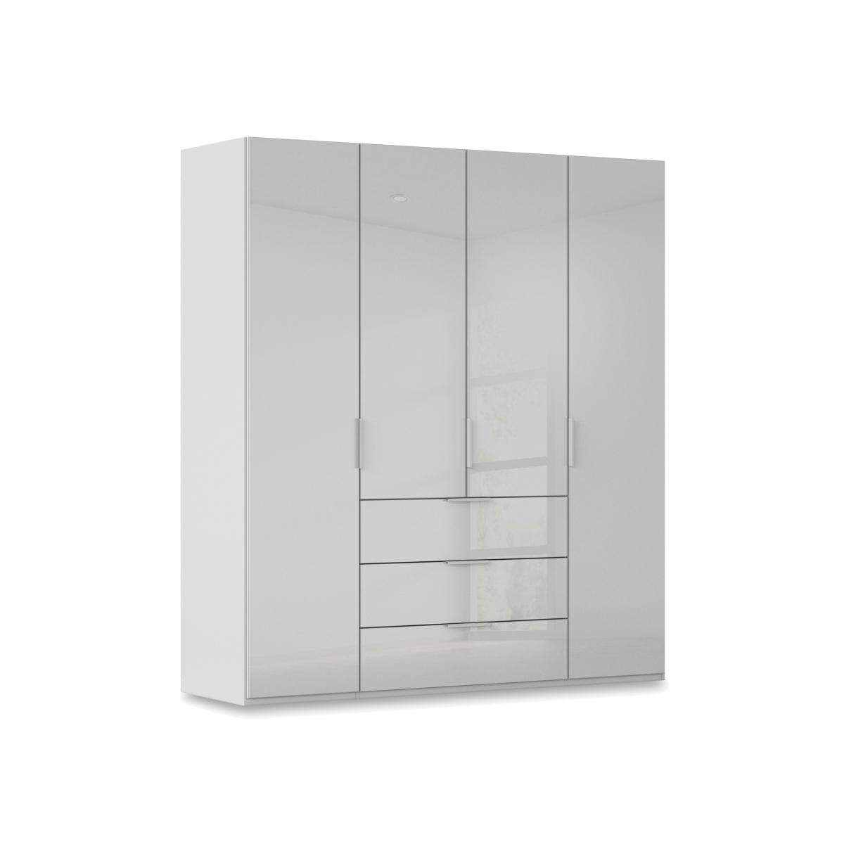 Sleek, modern and minimal, this four- door combi wardrobe makes it easy to create a bedroom that’s a haven of calm and relaxation. In a choice of colours for the frame and matching glass doors. Why you'll love it Enjoy minimal style and maximum storage with our Rauch Haven range. Sleek and modern, this 4- door combi wardrobe helps you create a calm, clutter- free bedroom. In a choice of fashionable colours for the décor frame and glass doors. Well- designed storage space with 3 drawers, and 2 shelves and a hanging rail in each wardrobe section. Stylishly elongated door and drawer handles. Soft- closing doors and drawers. Customise your wardrobe with drawer units, storage dividers, extra shelves and more. Made in Germany. Exclusively at Furniture Village. This 4- door combi wardrobe is part of our Rauch Haven range. What you need to know Delivered, assembled and installed for you free of charge. Standard internal storage comprises 2 adjustable shelves and 1 adjustable hanging rail per compartment. Drawer units, compartment dividers, LED lights and extra shelves and hanging rails are available for this wardrobe at an additional cost. Dust with a lint- free cloth. Do not use silicone- based furniture polishes. You’ll find a huge choice of wardrobes, chests of drawers and more in our Rauch Haven range. WARNING! Furniture can tip over unexpectedly and cause injury. This item must be fixed to a wall using the anti- tip kit provided. Be sure to use the correct wall fixings suitable for the walls in your home. Furniture Village is not able to fix anti- tip devices for you. Seek professional advice if you are unsure.