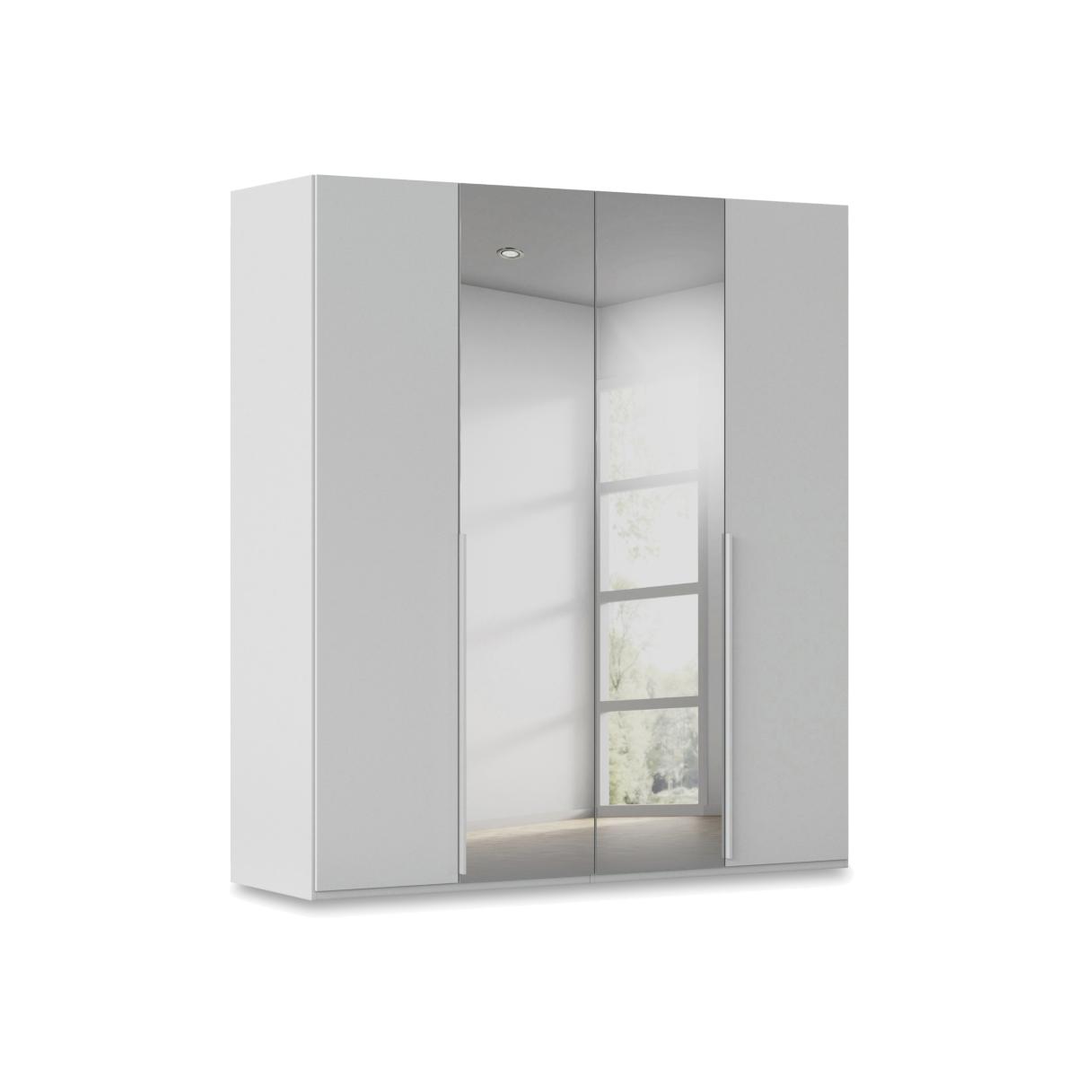 Sleek, modern and minimal, this four- door hinged wardrobe makes it easy to create a bedroom that’s a haven of calm and relaxation. With two mirror doors and in a choice of colours for the décor finish. Why you'll love it Enjoy minimal style and maximum storage with our Rauch Haven range. Sleek and modern, this 4- door hinged wardrobe helps you create a calm, clutter- free bedroom. The décor frame and doors are available in a choice of fashionable colours. Mirror doors have a subtle grey tint. Stylishly elongated matching door handles. Soft- closing doors. Well- designed storage space with 2 shelves and a hanging rail in each wardrobe section. Customise your wardrobe with drawer units, storage dividers, extra shelves and more. Made in Germany. Exclusively at Furniture Village. This 4- door hinged wardrobe is part of our Rauch Haven range. What you need to know Delivered, assembled and installed for you free of charge. Standard internal storage comprises 2 adjustable shelves and 1 adjustable hanging rail per compartment. Drawer units, compartment dividers, LED lights and extra shelves and hanging rails are available for this wardrobe at an additional cost. Dust with a lint- free cloth. Do not use silicone- based furniture polishes. You’ll find a huge choice of wardrobes, chests of drawers and more in our Rauch Haven range. WARNING! Furniture can tip over unexpectedly and cause injury. This item must be fixed to a wall using the anti- tip kit provided. Be sure to use the correct wall fixings suitable for the walls in your home. Furniture Village is not able to fix anti- tip devices for you. Seek professional advice if you are unsure.