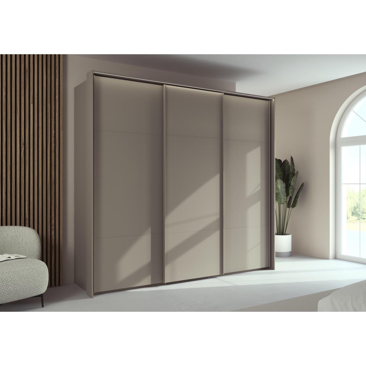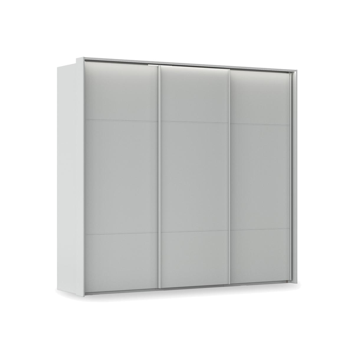 Sleek, modern and minimal, this three-door sliding wardrobe makes it easy to create a bedroom that’s a haven of calm and relaxation. With remote-controlled LED lights and in a choice of colours for the décor finish. Why you'll love it Enjoy minimal style and maximum storage with our Rauch Haven range. Sleek and modern, this 250 cm 3-door slider wardrobe helps you create a calm, clutter-free bedroom. The décor frame and doors are available in a choice of fashionable colours. Remote-controlled exterior LED lighting. Seamless full-height door pulls. Soft-closing doors. Well-designed storage space with 2 shelves and a hanging rail in each wardrobe section. Customise your wardrobe with drawer units, storage dividers, extra shelves and more. Made in Germany. Exclusively at Furniture Village. This 3-door slider wardrobe is part of our Rauch Haven range. What you need to know Delivered, assembled and installed for you free of charge. Standard internal storage comprises 2 adjustable shelves and 1 adjustable hanging rail per compartment. Drawer units, compartment dividers, LED lights and extra shelves and hanging rails are available for this wardrobe at an additional cost. Dust with a lint-free cloth. Do not use silicone-based furniture polishes. You’ll find a huge choice of wardrobes, chests of drawers and more in our Rauch Haven range. WARNING! Item code: HAV-0FN8DEC-002