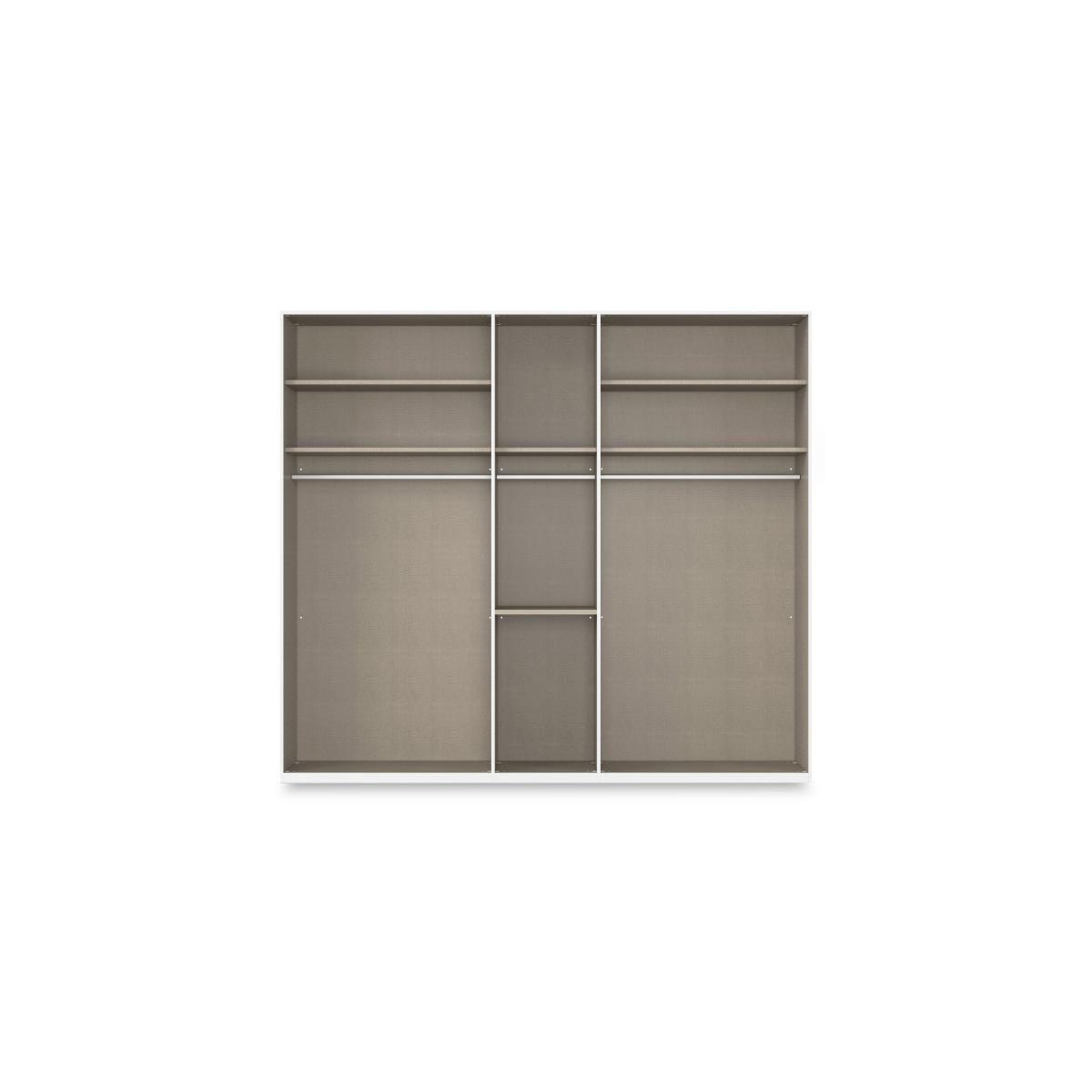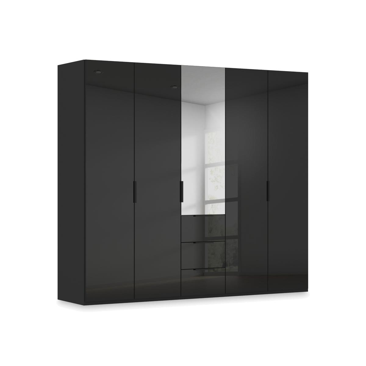 Sleek, modern and minimal, this four- door combi wardrobe makes it easy to create a bedroom that’s a haven of calm and relaxation. With a mirror door and in a choice of colours for the frame and matching glass doors. Why you'll love it Enjoy minimal style and maximum storage with our Rauch Haven range. Sleek and modern, this 4- door combi wardrobe helps you create a calm, clutter- free bedroom. The décor frame and glass doors are available in a choice of fashionable colours. Mirror door has a subtle grey tint. Well- designed storage space with 3 drawers, 2 shelves and a hanging rail in each wardrobe section. Stylishly elongated door and drawer handles. Soft- closing doors and drawers. Customise your wardrobe with drawer units, storage dividers, extra shelves and more. Made in Germany. Exclusively at Furniture Village. This 5- door combi wardrobe is part of our Rauch Haven range. What you need to know Delivered, assembled and installed for you free of charge. Standard internal storage comprises 2 adjustable shelves and 1 adjustable hanging rail per compartment. Drawer units, compartment dividers, LED lights and extra shelves and hanging rails are available for this wardrobe at an additional cost. Dust with a lint- free cloth. Do not use silicone- based furniture polishes. You’ll find a huge choice of wardrobes, chests of drawers and more in our Rauch Haven range. WARNING! Furniture can tip over unexpectedly and cause injury. This item must be fixed to a wall using the anti- tip kit provided. Be sure to use the correct wall fixings suitable for the walls in your home. Furniture Village is not able to fix anti- tip devices for you. Seek professional advice if you are unsure.