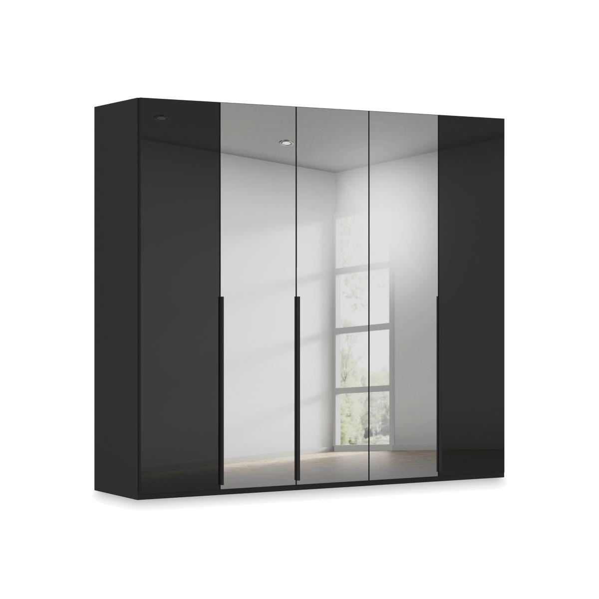 Sleek, modern and minimal, this five- door hinged wardrobe makes it easy to create a bedroom that’s a haven of calm and relaxation. With three mirror doors and in a choice of colours for the frame and matching glass doors. Why you'll love it Enjoy minimal style and maximum storage with our Rauch Haven range. Sleek and modern, this 5- door hinged wardrobe helps you create a calm, clutter- free bedroom. The décor frame and glass doors are available in a choice of fashionable colours. Mirror doors have a subtle grey tint. Stylishly elongated matching door handles. Soft- closing doors. Well- designed storage space with 2 shelves and a hanging rail in each wardrobe section. Customise your wardrobe with drawer units, storage dividers, extra shelves and more. Made in Germany. Exclusively at Furniture Village. This 5- door hinged wardrobe is part of our Rauch Haven range. What you need to know Delivered, assembled and installed for you free of charge. Standard internal storage comprises 2 adjustable shelves and 1 adjustable hanging rail per compartment. Drawer units, compartment dividers, LED lights and extra shelves and hanging rails are available for this wardrobe at an additional cost. Dust with a lint- free cloth. Do not use silicone- based furniture polishes. You’ll find a huge choice of wardrobes, chests of drawers and more in our Rauch Haven range. WARNING! Furniture can tip over unexpectedly and cause injury. This item must be fixed to a wall using the anti- tip kit provided. Be sure to use the correct wall fixings suitable for the walls in your home. Furniture Village is not able to fix anti- tip devices for you. Seek professional advice if you are unsure.