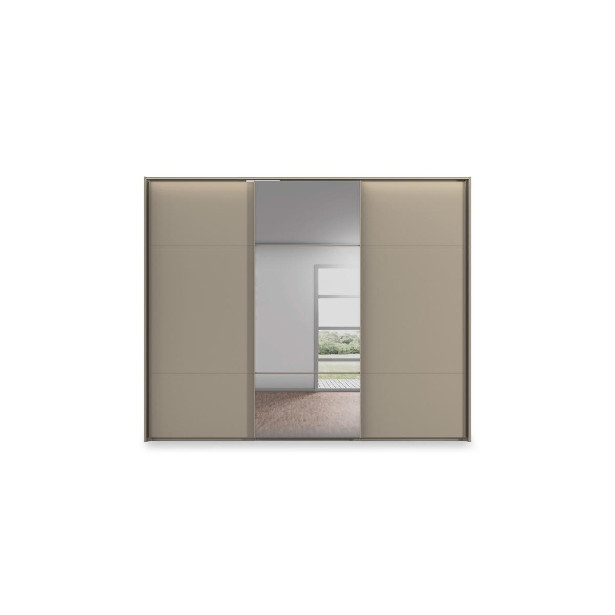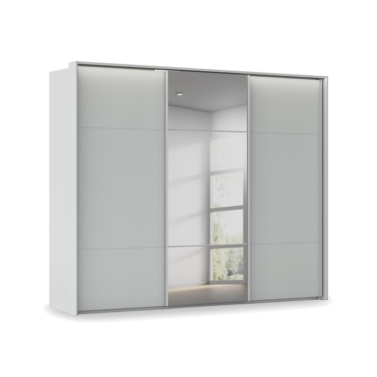 Sleek, modern and minimal, this three-door sliding wardrobe makes it easy to create a bedroom that’s a haven of calm and relaxation. With remote-controlled LED lights and a mirror door and in a choice of colours for the décor finish. Why you'll love it Enjoy minimal style and maximum storage with our Rauch Haven range. Sleek and modern, this 280 cm 3-door slider wardrobe helps you create a calm, clutter-free bedroom. The décor frame and door are available in a choice of fashionable colours. Seamless full-height door pulls. Mirror door has a subtle grey tint. Remote-controlled exterior LED lighting. Soft-closing doors. Well-designed storage space with 2 shelves and a hanging rail in each wardrobe section. Customise your wardrobe with drawer units, storage dividers, extra shelves and more. Made in Germany. Exclusively at Furniture Village. This 3-door slider wardrobe is part of our Rauch Haven range. What you need to know Delivered, assembled and installed for you free of charge. Standard internal storage comprises 2 adjustable shelves and 1 adjustable hanging rail per compartment. Drawer units, compartment dividers, LED lights and extra shelves and hanging rails are available for this wardrobe at an additional cost. Dust with a lint-free cloth. Do not use silicone-based furniture polishes. You’ll find a huge choice of wardrobes, chests of drawers and more in our Rauch Haven range. WARNING! Item code: HAV-0FT0DEC-002