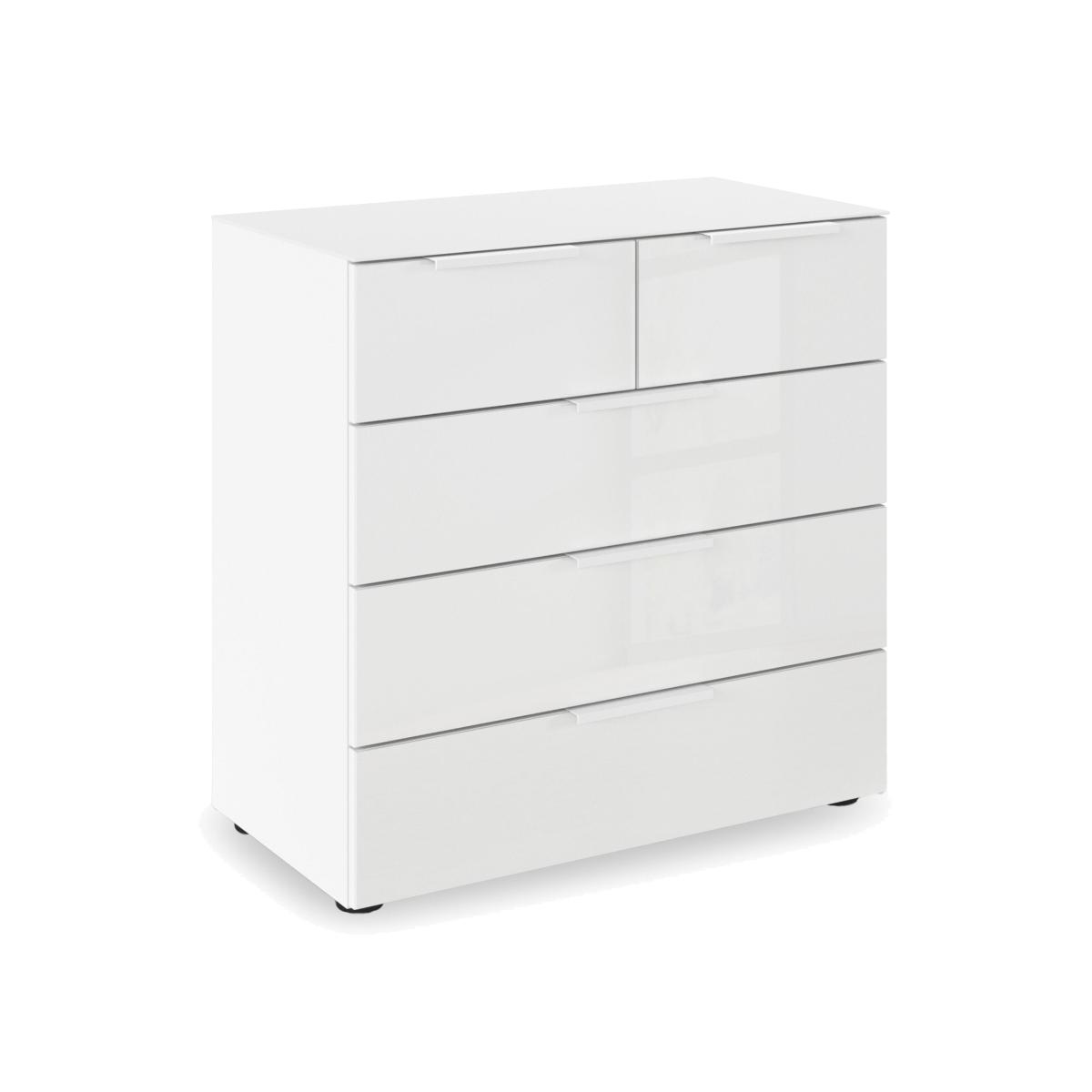 Sleek, modern and minimal, this five-drawer chest makes it easy to create a bedroom that’s a haven of calm and relaxation. In a choice of colours for the glass finish. Why you'll love it Enjoy minimal style and maximum storage with our Rauch Haven range. Sleek and modern, this 3 + 2-drawer chest helps you create a calm, clutter-free bedroom. The glass finish is available in a choice of fashionable colours. Stylishly matching handles. Soft-closing drawers. Made in Germany. Exclusively at Furniture Village. This 3 + 2-drawer chest is part of our Rauch Haven range. What you need to know Delivered, assembled and installed for you free of charge. Dust with a lint-free cloth. Do not use silicone-based furniture polishes. You’ll find a huge choice of wardrobes, chests of drawers and more in our Rauch Haven range. WARNING! Item code: HAV-CHT8GL-001