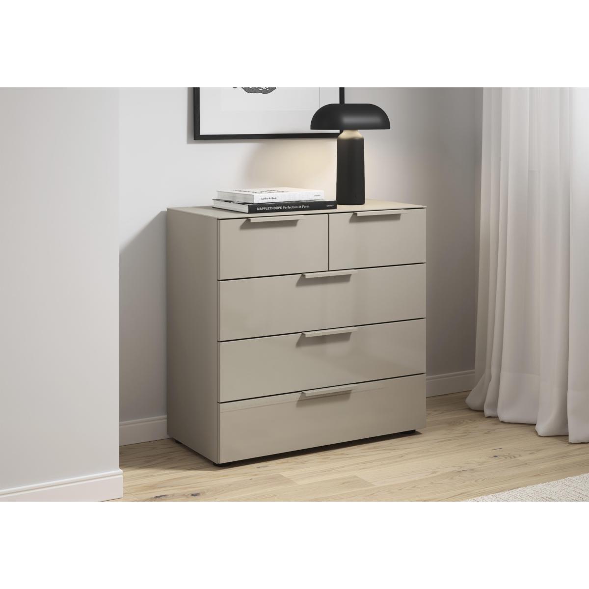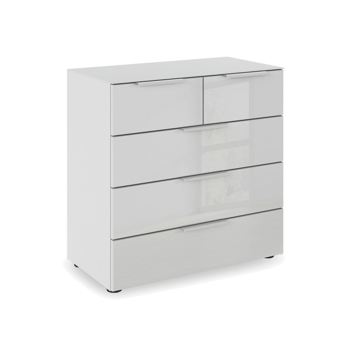 Sleek, modern and minimal, this five-drawer chest makes it easy to create a bedroom that’s a haven of calm and relaxation. In a choice of colours for the glass finish. Why you'll love it Enjoy minimal style and maximum storage with our Rauch Haven range. Sleek and modern, this 3 + 2-drawer chest helps you create a calm, clutter-free bedroom. The glass finish is available in a choice of fashionable colours. Stylishly matching handles. Soft-closing drawers. Made in Germany. Exclusively at Furniture Village. This 3 + 2-drawer chest is part of our Rauch Haven range. What you need to know Delivered, assembled and installed for you free of charge. Dust with a lint-free cloth. Do not use silicone-based furniture polishes. You’ll find a huge choice of wardrobes, chests of drawers and more in our Rauch Haven range. WARNING! Item code: HAV-CHT8GL-002