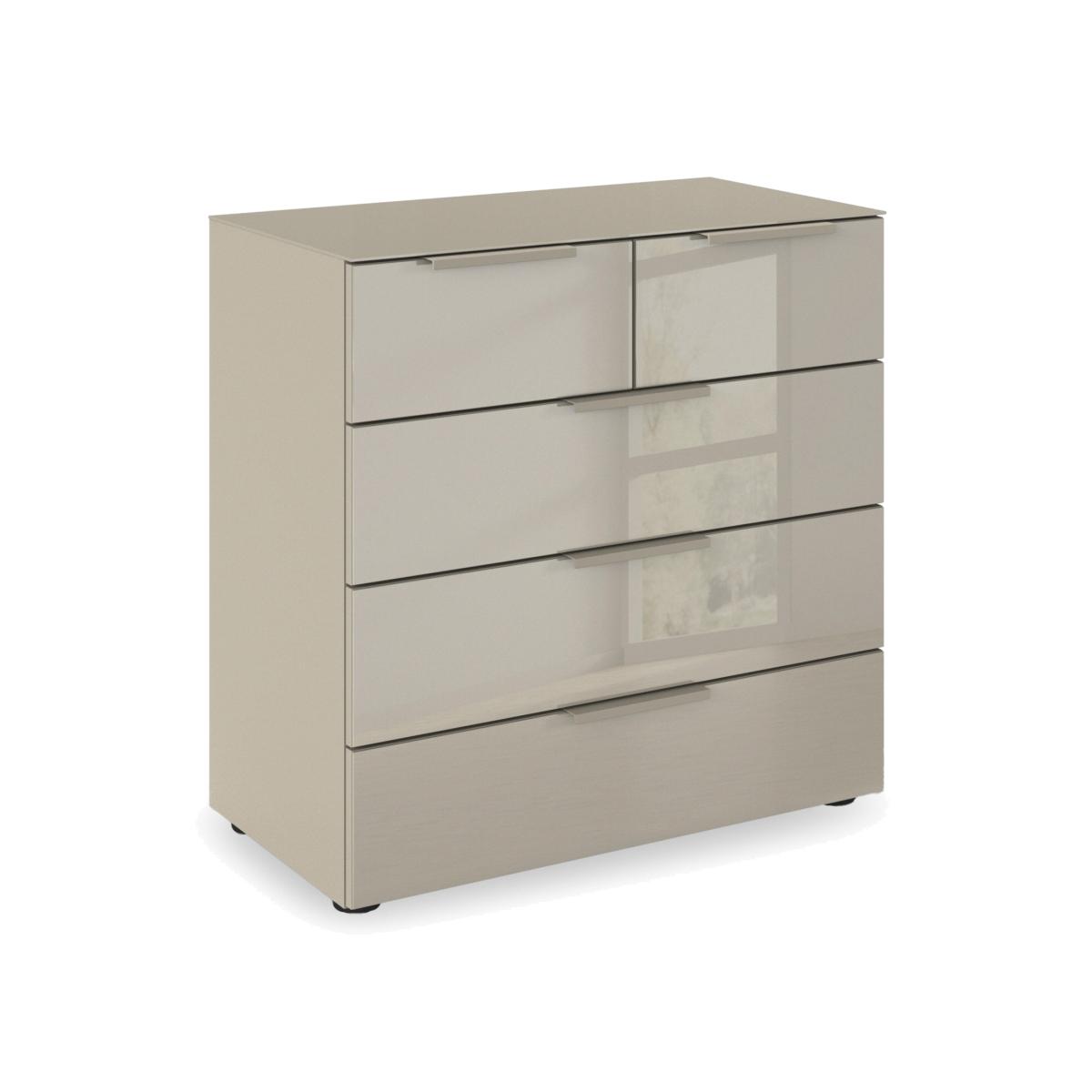 Sleek, modern and minimal, this five-drawer chest makes it easy to create a bedroom that’s a haven of calm and relaxation. In a choice of colours for the glass finish. Why you'll love it Enjoy minimal style and maximum storage with our Rauch Haven range. Sleek and modern, this 3 + 2-drawer chest helps you create a calm, clutter-free bedroom. The glass finish is available in a choice of fashionable colours. Stylishly matching handles. Soft-closing drawers. Made in Germany. Exclusively at Furniture Village. This 3 + 2-drawer chest is part of our Rauch Haven range. What you need to know Delivered, assembled and installed for you free of charge. Dust with a lint-free cloth. Do not use silicone-based furniture polishes. You’ll find a huge choice of wardrobes, chests of drawers and more in our Rauch Haven range. WARNING! Item code: HAV-CHT8GL-004