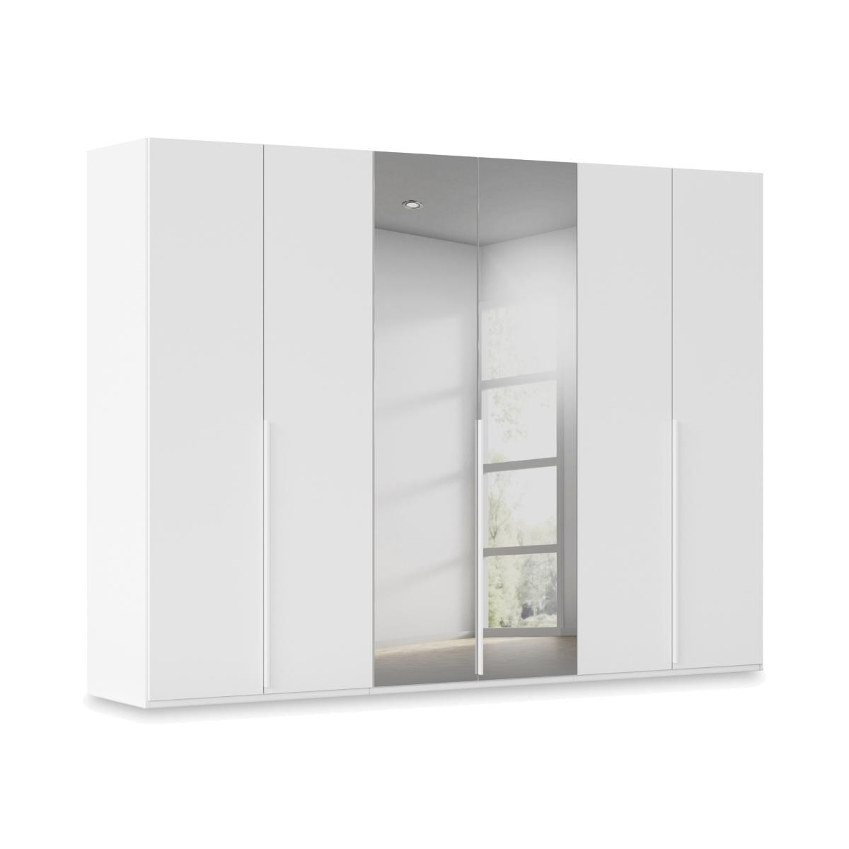 Sleek, modern and minimal, this six- door hinged wardrobe makes it easy to create a bedroom that’s a haven of calm and relaxation. With two mirror doors and in a choice of colours for the décor finish. Why you'll love it Enjoy minimal style and maximum storage with our Rauch Haven range. Sleek and modern, this 6- door hinged wardrobe helps you create a calm, clutter- free bedroom. The décor frame and doors are available in a choice of fashionable colours. Mirror doors have a subtle grey tint. Stylishly elongated matching door handles. Soft- closing doors. Well- designed storage space with 2 shelves and a hanging rail in each wardrobe section. Customise your wardrobe with drawer units, storage dividers, extra shelves and more. Made in Germany. Exclusively at Furniture Village. This 6- door hinged wardrobe is part of our Rauch Haven range. What you need to know Delivered, assembled and installed for you free of charge. Standard internal storage comprises 2 adjustable shelves and 1 adjustable hanging rail per compartment. Drawer units, compartment dividers, LED lights and extra shelves and hanging rails are available for this wardrobe at an additional cost. Dust with a lint- free cloth. Do not use silicone- based furniture polishes. You’ll find a huge choice of wardrobes, chests of drawers and more in our Rauch Haven range. WARNING! Furniture can tip over unexpectedly and cause injury. This item must be fixed to a wall using the anti- tip kit provided. Be sure to use the correct wall fixings suitable for the walls in your home. Furniture Village is not able to fix anti- tip devices for you. Seek professional advice if you are unsure.