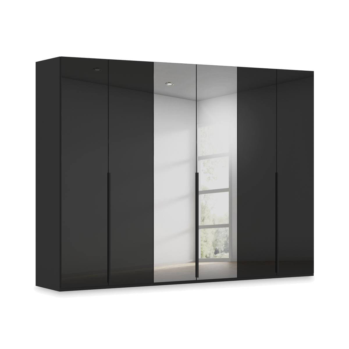 Sleek, modern and minimal, this six- door hinged wardrobe makes it easy to create a bedroom that’s a haven of calm and relaxation. With two mirror doors and in a choice of colours for the frame and matching glass doors. Why you'll love it Enjoy minimal style and maximum storage with our Rauch Haven range. Sleek and modern, this 6- door hinged wardrobe helps you create a calm, clutter- free bedroom. The décor frame and glass doors are available in a choice of fashionable colours. Mirror doors have a subtle grey tint. Stylishly elongated matching door handles. Soft- closing doors. Well- designed storage space with 2 shelves and a hanging rail in each wardrobe section. Customise your wardrobe with drawer units, storage dividers, extra shelves and more. Made in Germany. Exclusively at Furniture Village. This 6- door hinged wardrobe is part of our Rauch Haven range. What you need to know Delivered, assembled and installed for you free of charge. Standard internal storage comprises 2 adjustable shelves and 1 adjustable hanging rail per compartment. Drawer units, compartment dividers, LED lights and extra shelves and hanging rails are available for this wardrobe at an additional cost. Dust with a lint- free cloth. Do not use silicone- based furniture polishes. You’ll find a huge choice of wardrobes, chests of drawers and more in our Rauch Haven range. WARNING! Furniture can tip over unexpectedly and cause injury. This item must be fixed to a wall using the anti- tip kit provided. Be sure to use the correct wall fixings suitable for the walls in your home. Furniture Village is not able to fix anti- tip devices for you. Seek professional advice if you are unsure.