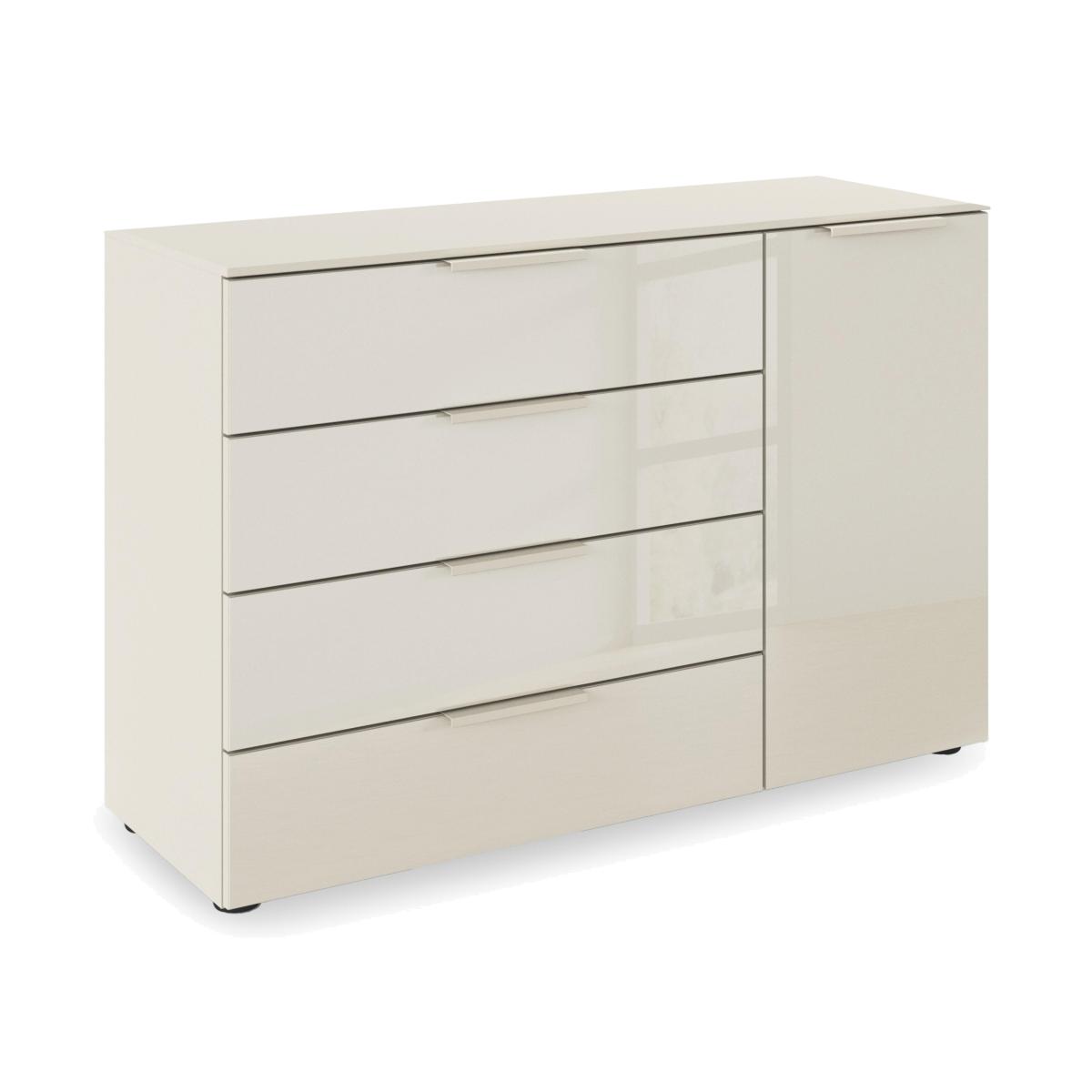 Sleek, modern and minimal, this four-drawer one-door chest makes it easy to create a bedroom that’s a haven of calm and relaxation. In a choice of colours for the décor and glass finish. Why you'll love it Enjoy minimal style and maximum storage with our Rauch Haven range. Sleek and modern, this 4-drawer 1-door chest helps you create a calm, clutter-free bedroom. The décor frame and glass drawer fronts are available in a choice of fashionable colours. Stylishly matching handles. Soft-closing drawers and door. Made in Germany. Exclusively at Furniture Village. This 4-drawer 1-door chest is part of our Rauch Haven range. What you need to know Delivered, assembled and installed for you free of charge. Dust with a lint-free cloth. Do not use silicone-based furniture polishes. You’ll find a huge choice of wardrobes, chests of drawers and more in our Rauch Haven range. WARNING! Item code: HAV-CHT4GL-003