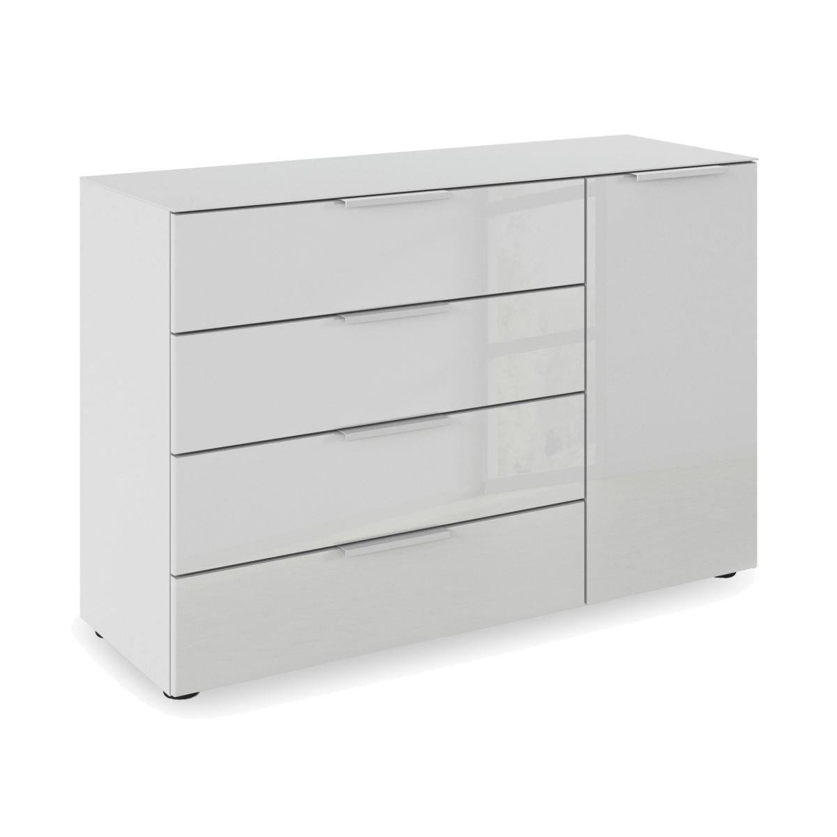 Sleek, modern and minimal, this four-drawer one-drawer chest makes it easy to create a bedroom that’s a haven of calm and relaxation. In a choice of colours for the glass finish. Why you'll love it Enjoy minimal style and maximum storage with our Rauch Haven range. Sleek and modern, this 4-drawer 1-door chest helps you create a calm, clutter-free bedroom. The glass finish is available in a choice of fashionable colours. Stylishly matching handles. Soft-closing drawers and door. Made in Germany. Exclusively at Furniture Village. This 4-drawer 1-door chest is part of our Rauch Haven range. What you need to know Delivered, assembled and installed for you free of charge. Dust with a lint-free cloth. Do not use silicone-based furniture polishes. You’ll find a huge choice of wardrobes, chests of drawers and more in our Rauch Haven range. WARNING! Item code: HAV-CHT9GL-002