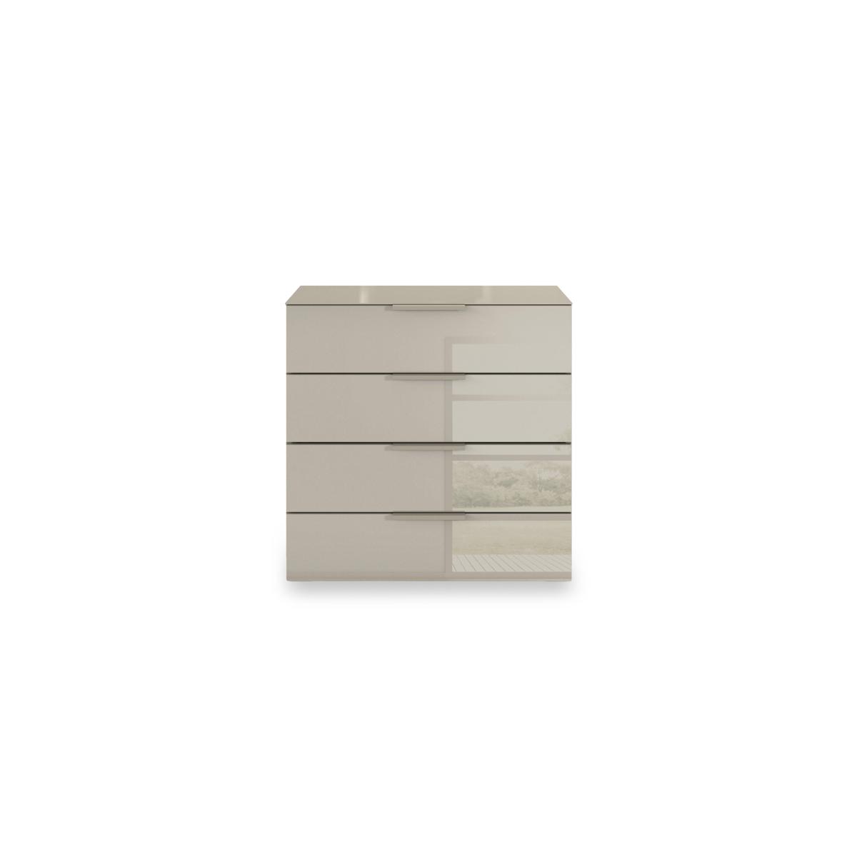 Sleek, modern and minimal, this four-drawer chest makes it easy to create a bedroom that’s a haven of calm and relaxation. In a choice of colours for the glass finish. Why you'll love it Enjoy minimal style and maximum storage with our Rauch Haven range. Sleek and modern, this 4-drawer chest helps you create a calm, clutter-free bedroom. The glass finish is available in a choice of fashionable colours. Stylishly matching handles. Soft-closing drawers. Made in Germany. Exclusively at Furniture Village. This 4-drawer chest is part of our Rauch Haven range. What you need to know Delivered, assembled and installed for you free of charge. Dust with a lint-free cloth. Do not use silicone-based furniture polishes. You’ll find a huge choice of wardrobes, chests of drawers and more in our Rauch Haven range. WARNING! Item code: HAV-CHT7GL-005