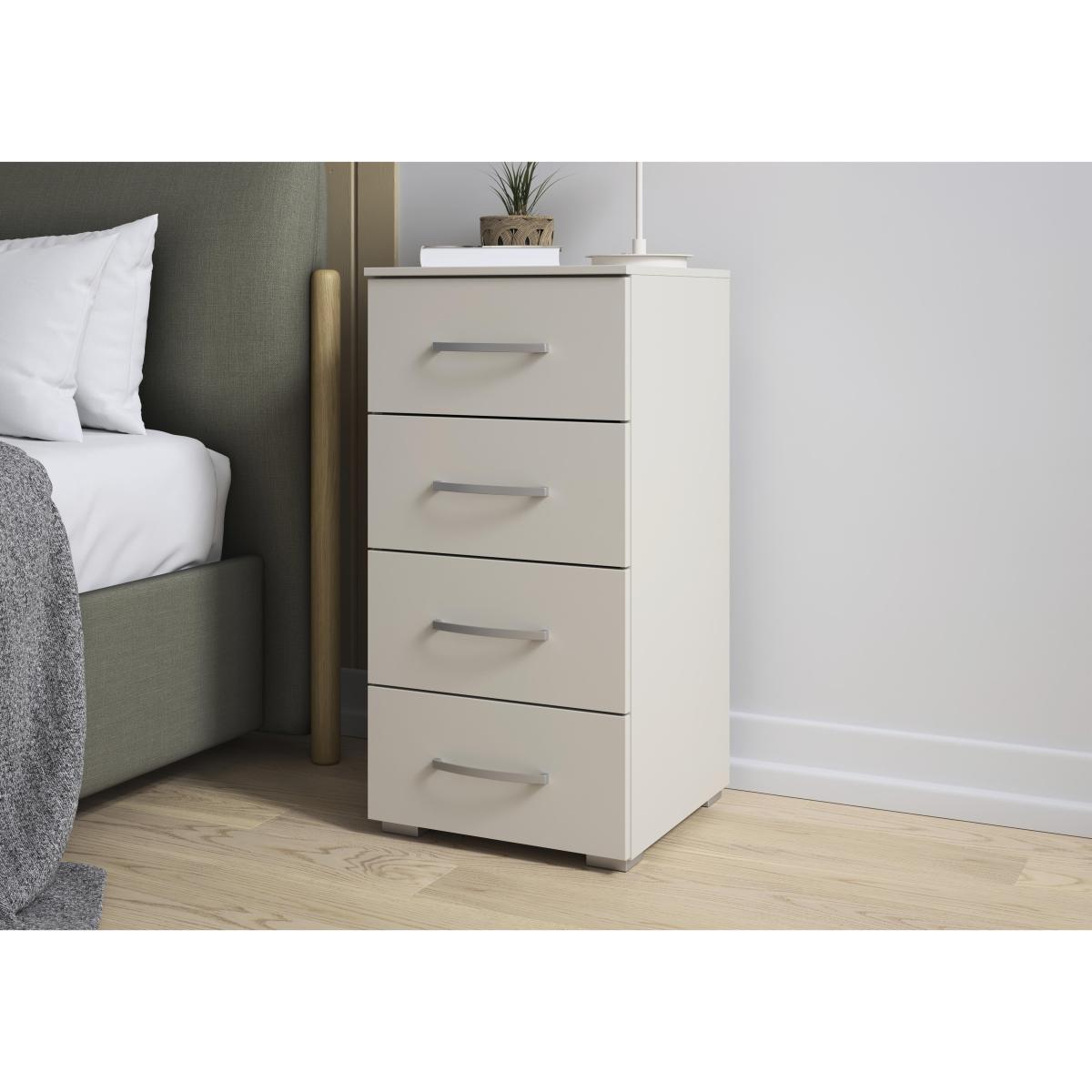 Ready to redesign your bedroom? It’s so easy with our exclusive Rauch Impulse collection of wardrobes, chests of drawers and more. This is a very practical range, designed to fit perfectly into every size and shape of bedroom. Narrow room? The range’s sliding door wardrobes take up less space. Compact bedroom? The combi wardrobes offer both drawer and hanging space in one unit. Minimal style? It’s easy to add internal storage fittings to your favourite wardrobe to maintain that clean and simple look. Yours at a great-value price, the Rauch Impulse range is made in Germany for Furniture Village. This narrow four-drawer chest of drawers is perfectly proportioned for a smaller bedroom. And with soft close drawers and a matt décor finish, it’s beautifully crafted too. Why you'll love it Bring home fashionable modern bedroom style at a great-value price. This narrow chest of drawers’ matt décor finish is available in a choice of colours. The soft-closing drawers have elegant metal handles. Made in Germany. Only at Furniture Village. This 4-drawer chest is part of our Rauch Impulse range. What you need to know Assembled and installed for you on delivery. Cost is included in the delivery charge. Dust with a lint-free cloth. Do not use silicone-based furniture polishes. Shop the Rauch Impulse range for a huge choice of stylish bedroom furniture. WARNING! Item code: IMPU4DRWDEC1-003