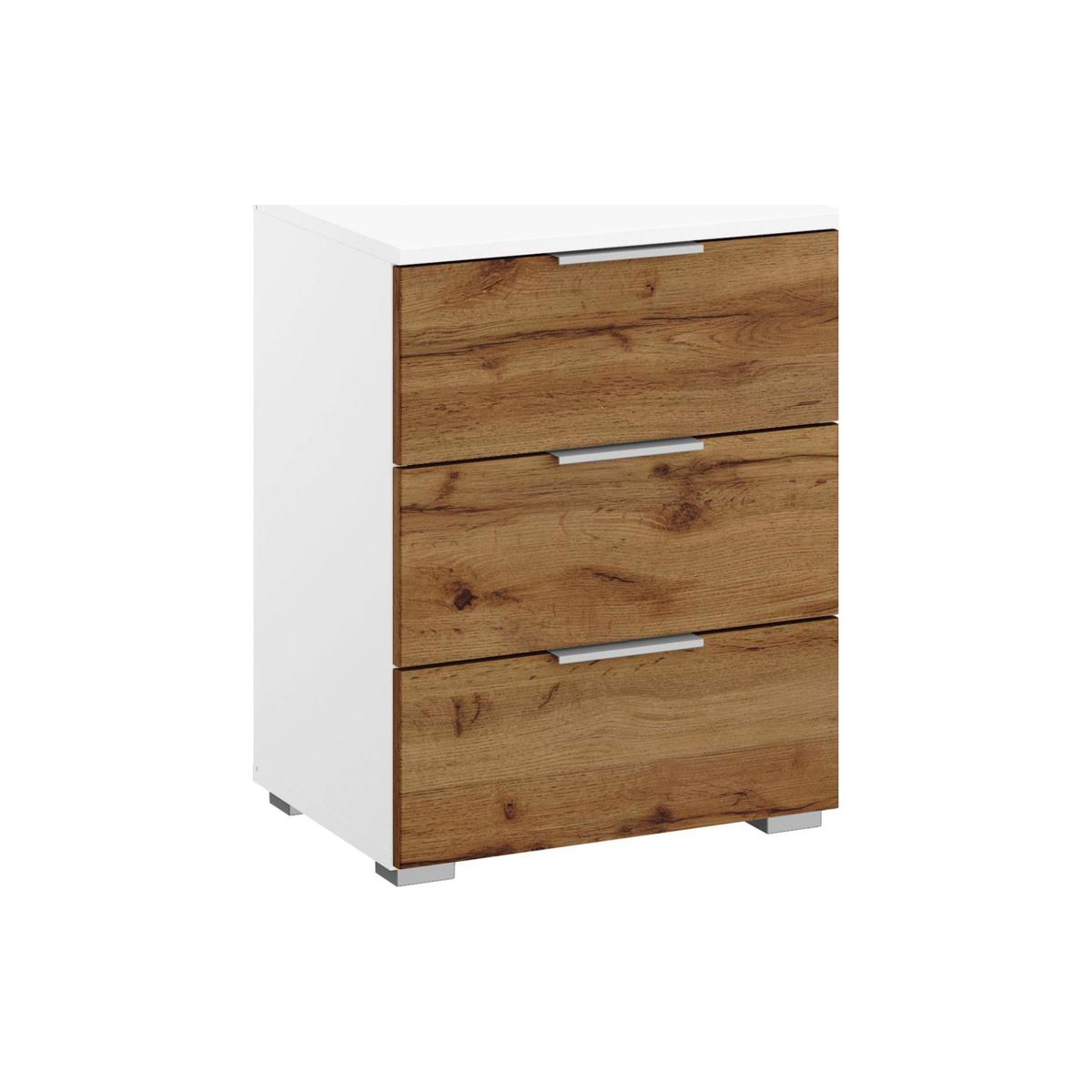 Contemporary style meets ergonomic design in the Indiana bedroom collection. Designed and made in Germany by Rauch, manufacturers of sustainable and well-crafted furniture, this collection includes both hinged door and sliding door wardrobes – in a wide range of sizes – as well as chests of drawers and a bedside cabinet, all in a choice of three sophisticated colourways. Inside the elegant wardrobes, you’ll find shelves and hanging rails as standard that ensure even the smallest size wardrobe is a model of efficiency. Additional internal fittings are available if you’d prefer to configure your own space, and all wardrobes feature a built in accessory valet for perfectly tidy storage of belts, bags, scarves and more. Industrial-style bedroom cabinet. Sleek exterior in a choice of three colour combinations. Beautifully designed and made in Germany by Rauch. The ideal bedside cabinet is the right height for your bed, offers roomy storage and is the perfect place for a table lamp and a book or two. And, if it’s anything like the Indiana 3 drawer bedside cabinet, it looks absolutely gorgeous too. Sleek and contemporary in style, this cool modern bedside table is available in a choice of three sophisticated colour combinations. Its soft-close drawers have stylish chrome-effect handles. And while it’s a stunning bedside cabinet in a larger bedroom, it can also serve as a fantastic smaller chest of drawers in a more compact space. The Indiana 3 drawer bedside cabinet is designed to coordinate with the sliding door and hinged door wardrobes in the Indiana bedroom furniture collection. Designed and crafted in Germany by environmentally-friendly manufacturer Rauch, the range also includes several chests of drawers which makes it easy to create a stylish and coordinated bedroom look. Wardrobes and chests of drawers are offered in a range of sizes. WARNING!. Furniture can tip over unexpectedly and cause injury. This item shall be fixed to a wall using the anti-tip kit provided with the furniture. Be sure to use the correct wall fixings suitable for the walls in your home.