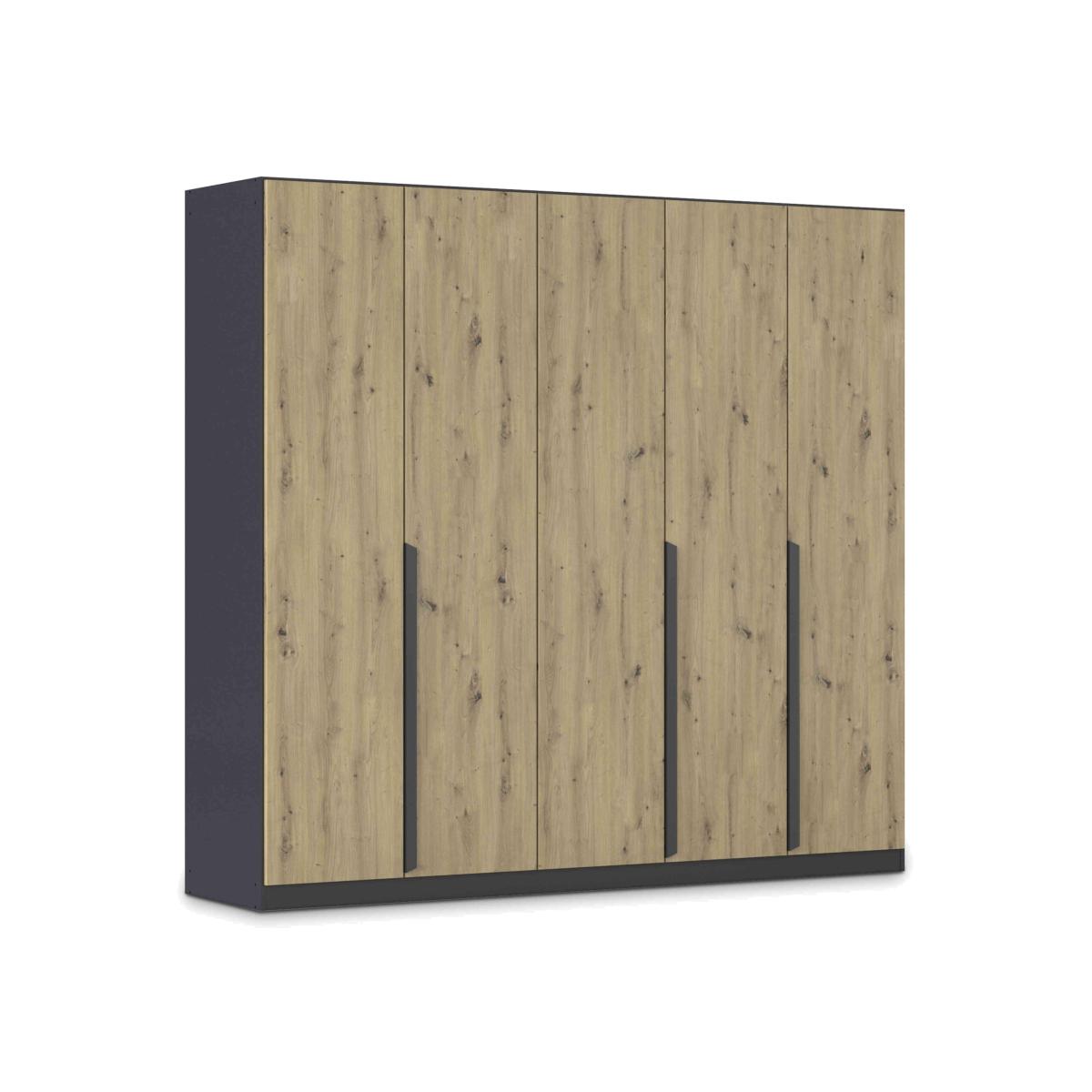 This large Rauch wardrobe brings bold industrial style – and fabulous storage – to your contemporary bedroom. With a cool urban look and soft- close doors, it’s sleek and well- designed. Why you'll love it Superbly well- crafted bedroom furniture from Rauch. Modern industrial design for your cool and contemporary bedroom. Stylish combination of artisanal oak- effect decor doors and metallic grey frame. Wardrobe doors are soft- closing and have metal handles. Practical storage arrangement with 1 shelf and 1 hanging rail in each section. Make it just right for you by choosing from a range of extra interior fittings. Made in Germany. This 5- door hinged wardrobe is part of the Rauch Leon range. What you need to know Assembled in your home free of charge. This hinged door wardrobe is available in a choice of sizes to fit any bedroom. Create a stylish space with wardrobes and chests of drawers from the Rauch Leon range. WARNING! Furniture can tip over unexpectedly and cause injury. This item must be fixed to a wall using the anti- tip kit provided. Be sure to use the correct wall fixings suitable for the walls in your home. Furniture Village is not able to fix anti- tip devices for you. Seek professional advice if you are unsure.