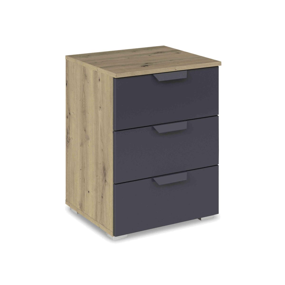 In a choice of finishes for the frame and drawer fronts, this industrial- style Rauch bedside cabinet is a very versatile piece of furniture. It makes a great chest of drawers in a smaller bedroom too. Why you'll love it Superbly well- crafted bedroom furniture from Rauch. Modern industrial design for your cool and contemporary bedroom. Choice of cool urban finishes for the drawer fronts and frame. Drawers are soft- closing and have metal handles. Made in Germany. This 3- drawer bedside cabinet is part of the Rauch Leon range. What you need to know Assembled in your home free of charge. Create a stylish space with wardrobes and chests of drawers from the Rauch Leon range. WARNING! Furniture can tip over unexpectedly and cause injury. This item must be fixed to a wall using the anti- tip kit provided. Be sure to use the correct wall fixings suitable for the walls in your home. Furniture Village is not able to fix anti- tip devices for you. Seek professional advice if you are unsure.