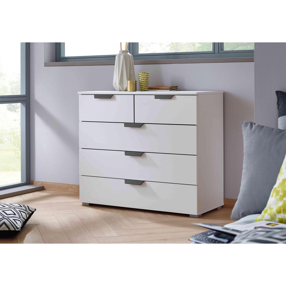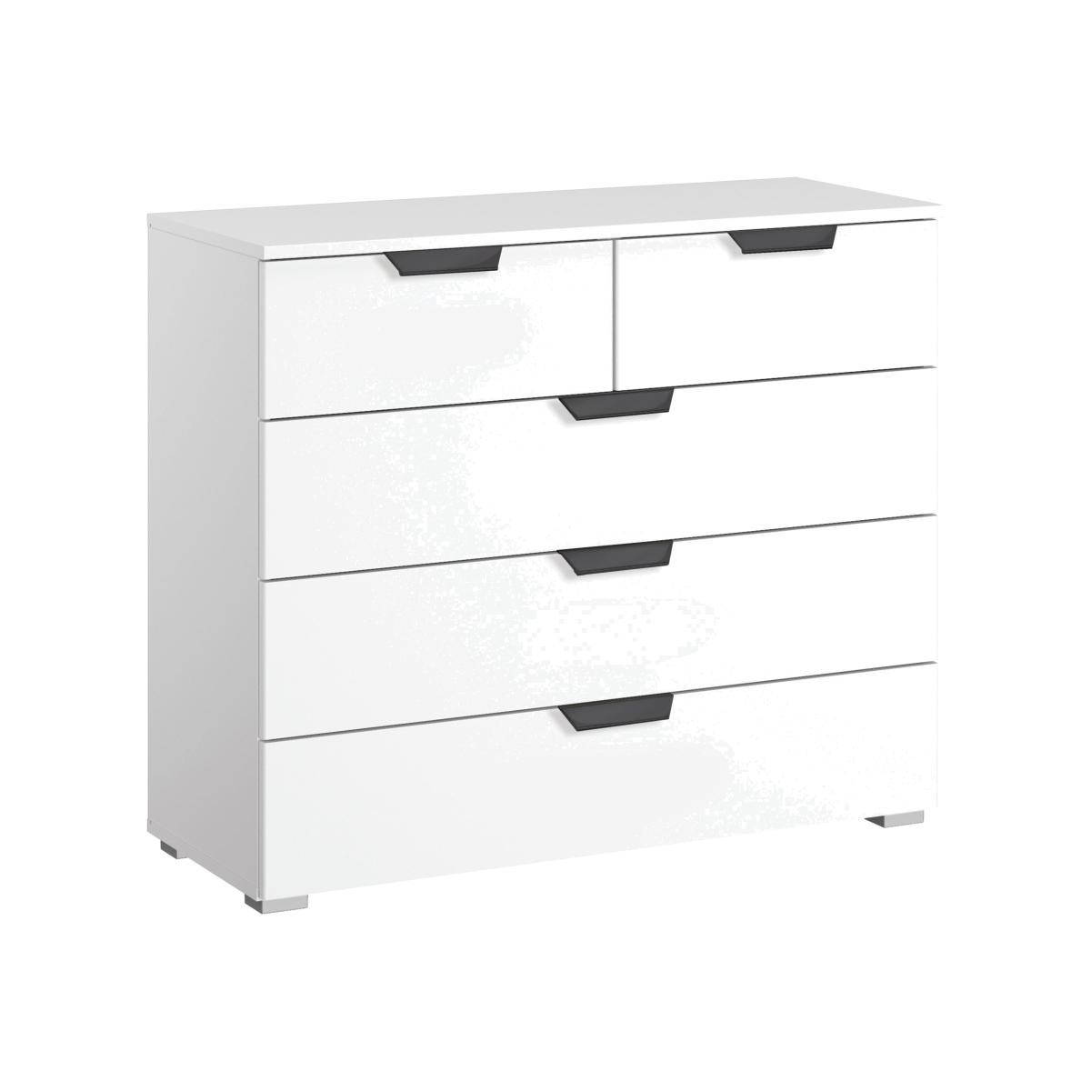 Here’s the bedroom furniture range that’s designed to suit you, whatever the size or shape of your bedroom. Made by Rauch exclusively for Furniture Village, the Rauch Lima range features a clever space-maximising corner wardrobe with an innovative panoramic door opening for a more ergonomic approach to clothes’ storage. The range’s sliding door wardrobes come in two heights, multiple widths and a wide choice of stylish door finishes including glass, mirrored and decor, so it's easy to find the one that will fit your space and appeal to your interior design aesthetic. Complete your new bedroom with the range’s bedside cabinets and chests of drawers. Exceptional quality, innovative style. This Rauch chest of drawers offers a practical and organisation-friendly arrangement of drawers as well as a stylish contemporary look. It comes in a choice of colours. Why you'll love it. Be ever so stylishly organised with this 2+3 drawer chest of drawers. Sophisticated modern style, space-efficient design. Stylish decor front. In a choice of contemporary colours. Made in Germany by Rauch. Only at Furniture Village. This 2+3 drawer chest is part of the Rauch Lima range. What you need to know. Handles are made of metal. Drawers are soft-closing. Assembled in your home free of charge. WARNING!. Furniture can tip over unexpectedly and cause injury. This item must be fixed to a wall using the anti-tip kit provided. Be sure to use the correct wall fixings suitable for the walls in your home. Furniture Village is not able to fix anti-tip devices for you. Seek professional advice if you are unsure.