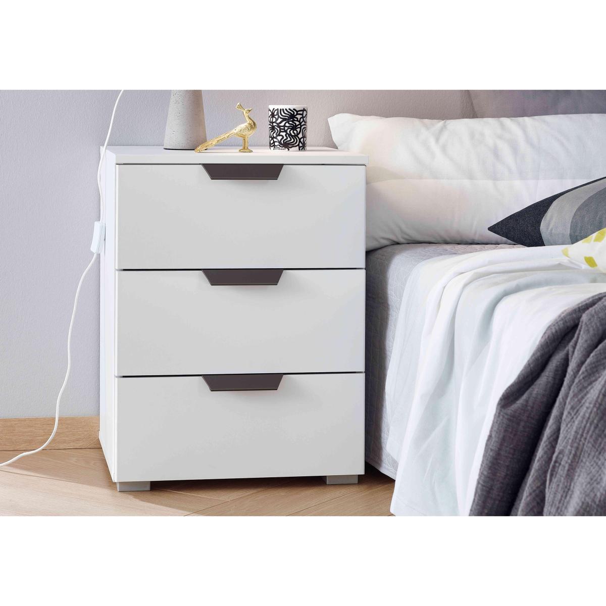 Here’s the bedroom furniture range that’s designed to suit you, whatever the size or shape of your bedroom. Made by Rauch exclusively for Furniture Village, the Rauch Lima range features a clever space-maximising corner wardrobe with an innovative panoramic door opening for a more ergonomic approach to clothes’ storage. The range’s sliding door wardrobes come in two heights, multiple widths and a wide choice of stylish door finishes including glass, mirrored and decor, so it's easy to find the one that will fit your space and appeal to your interior design aesthetic. Complete your new bedroom with the range’s bedside cabinets and chests of drawers. Exceptional quality, innovative style. This 3-drawer bedside cabinet is the perfect addition to your Rauch Lima bedroom look and provides useful extra storage space as well as more than a touch of sleek contemporary style. Why you'll love it. On-trend 3-drawer bedside cabinet with plenty of practical storage space. Sophisticated modern style, space-efficient design. Stylish decor front. In a choice of contemporary colours. Made in Germany by Rauch. Only at Furniture Village. This 3-drawer bedside cabinet is part of the Rauch Lima range. What you need to know. Handles are made of metal. Drawers are soft-closing. Assembled in your home free of charge. WARNING!. Furniture can tip over unexpectedly and cause injury. This item must be fixed to a wall using the anti-tip kit provided. Be sure to use the correct wall fixings suitable for the walls in your home. Furniture Village is not able to fix anti-tip devices for you. Seek professional advice if you are unsure.