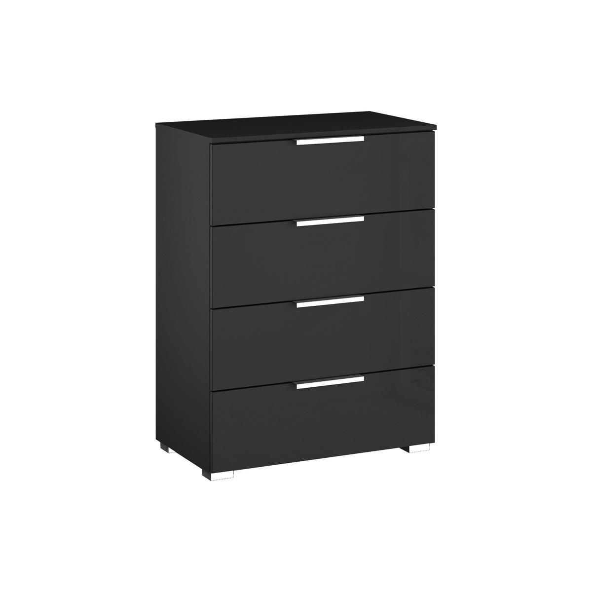 Sleek and contemporary bedroom style. Striking glass-fronted drawers. Designed and crafted in Germany by Rauch. Successfully doubling as a small chest of drawers in a more compact bedroom, the Perth 4 drawer bedside table offers great storage as well as great style. The four drawers make it the ideal way to stay neat and tidy, and there’s plenty of room for a bedside table lamp and a stack of books on its spacious top. This bedside table offers a wide range of practical design features too. Drawer fronts are made of glass with an extremely durable finish – it’s impact-resistant, colourfast and UV-protected. Drawers are soft-closing and handles and feet have a chrome-effect finish. Choose from several stylish colour combinations for the glass drawers and top, and the cabinet frame. The Perth 4 drawer bedside table is part of the Perth collection, designed and made in Germany by Rauch. Rauch is famous for its well-designed, functional and sustainable bedroom furniture collections. The Perth range also includes a wide choice of sliding door wardrobes.