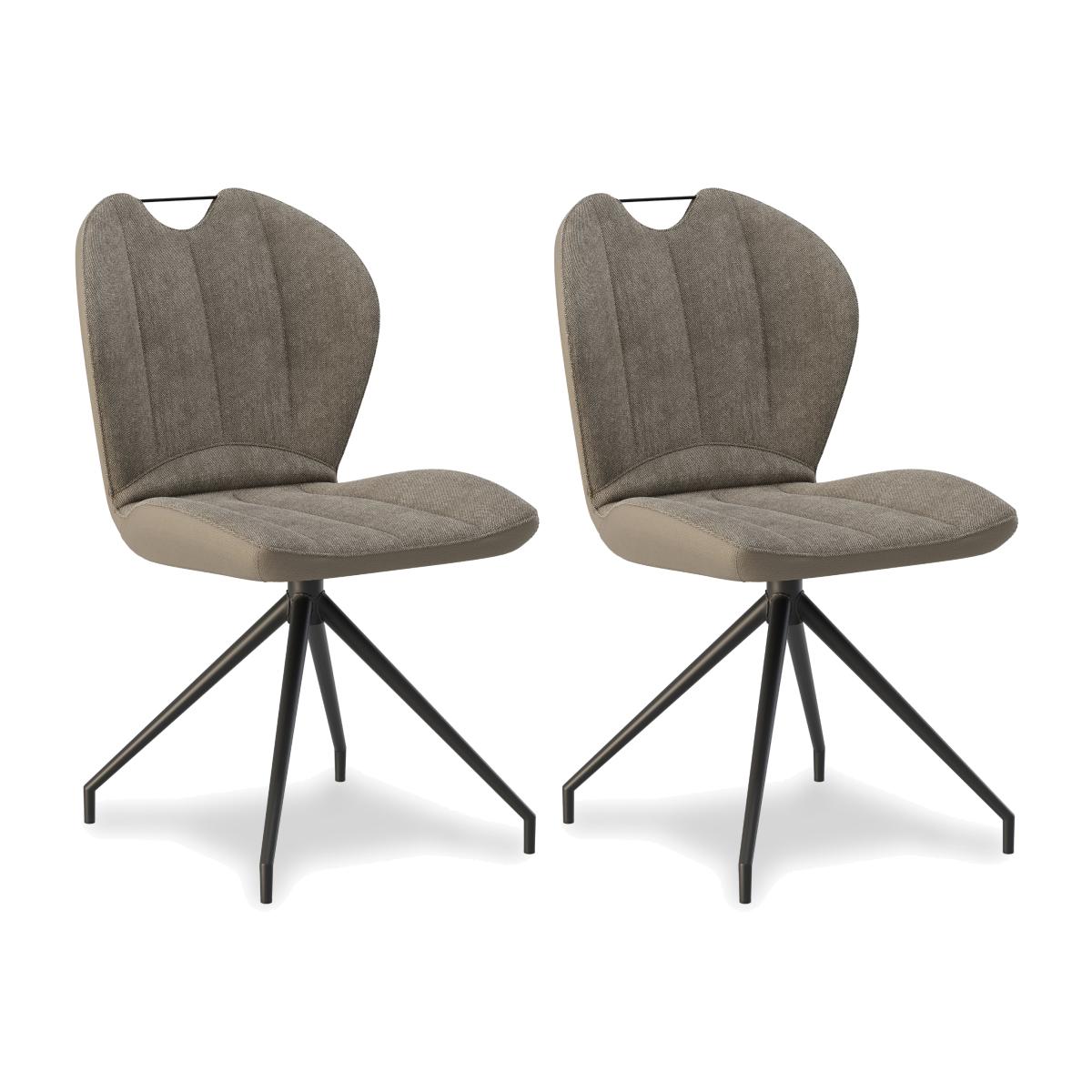 These on-trend dining chairs are ideal for a smaller dining room. With integrated handles and self-returning swivel bases, they make life easier for guests and are so very comfortable, too. Why you'll love it Part of our Modern Dining Collection. Sleek modern style for your on-trend contemporary home. Ultra-comfortable seats with integrated handles and fluted stitching. Self-returning chair bases swivel 180° and then swivel back into place. Matt black lacquered steel legs. Upholstered in a choice of fabric colours. Also available in sets of 4 and 6 dining chairs. This set of 2 swivel dining chairs is part of our Raul range. What you need to know Foam seat cushioning. Part of our Raul collection of urban-style modern dining room furniture.