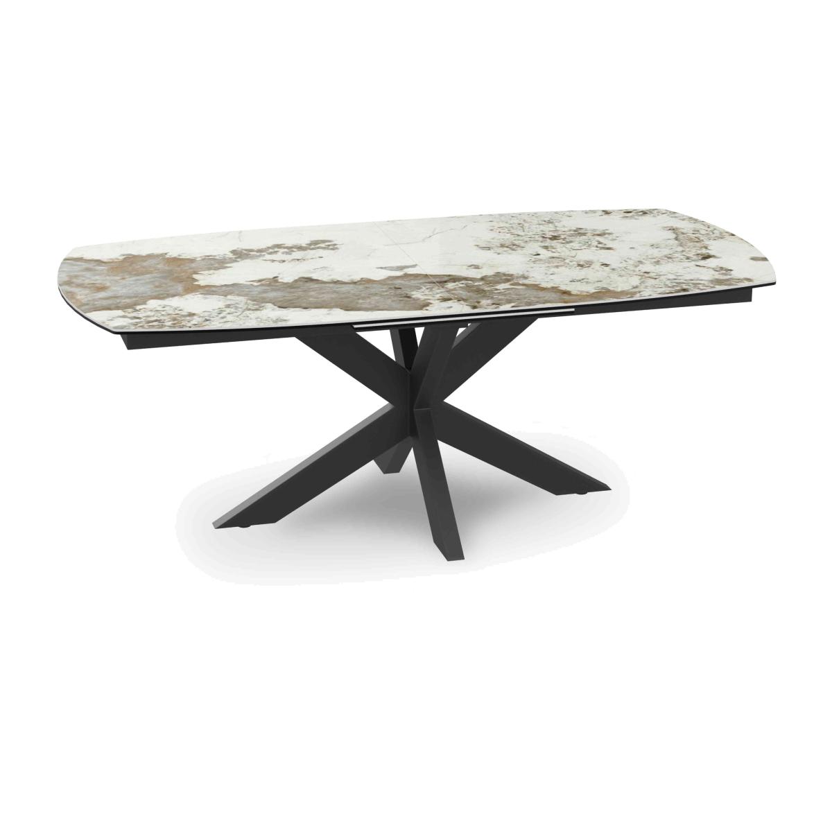 This clever and space-saving pop-up extending dining table comes in a choice of ten ceramic finishes – including marble patterning – and in two sizes. Only at Furniture Village. Why you'll love it Part of our Modern Dining Collection. Sleek modern style for your on-trend contemporary home. This exceptionally well-crafted extending dining table has a curved boat-shaped top. Choose from 10 beautiful ceramic finishes, including marbled ceramic. Such attention to detail – the marble patterning always matches whether the table is extended or closed. So easy to look after. Ceramic is scratch-resistant, chip-resistant and heat-resistant. Chunky matt black lacquered metal legs are arranged in a star shape. It’s ergonomic as well as elegant – the leg design allows you to seat more diners in comfort. To extend, simply pull on the table ends and an extra leaf pops up into place. Available in 2 sizes. Only at Furniture Village. This pop-up extending dining table is part of our Raul range. What you need to know Small pop-up dining table seats 6 closed and 8 when extended. Large pop-up dining table seats 8 closed and 10 when extended. Top is 3 mm ceramic layer on 6 mm glass layer. Steel legs with a lacquered finish. Please note that the ceramic table top is not 100% heatproof. We recommend using coasters and placemats at all times. Wipe clean with a damp cloth. Dry with a soft duster. Do not use abrasive cleaning products. Part of our Raul collection of urban-style modern dining room furniture.