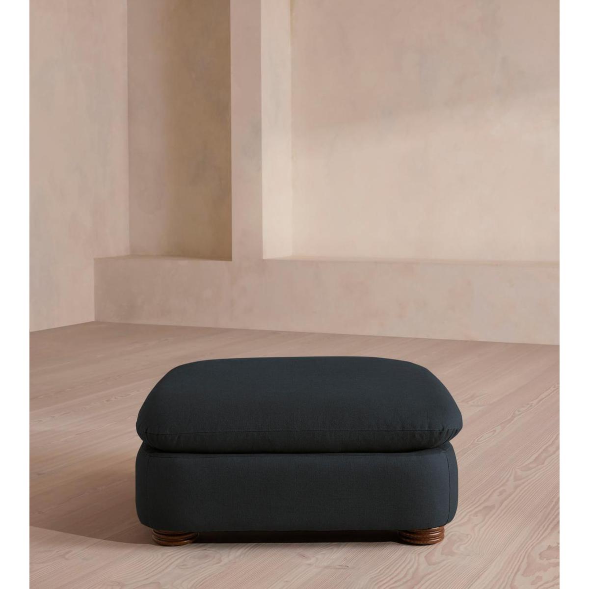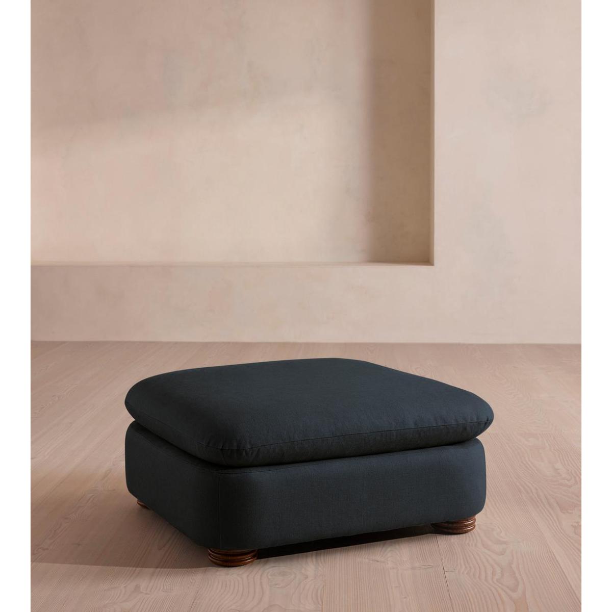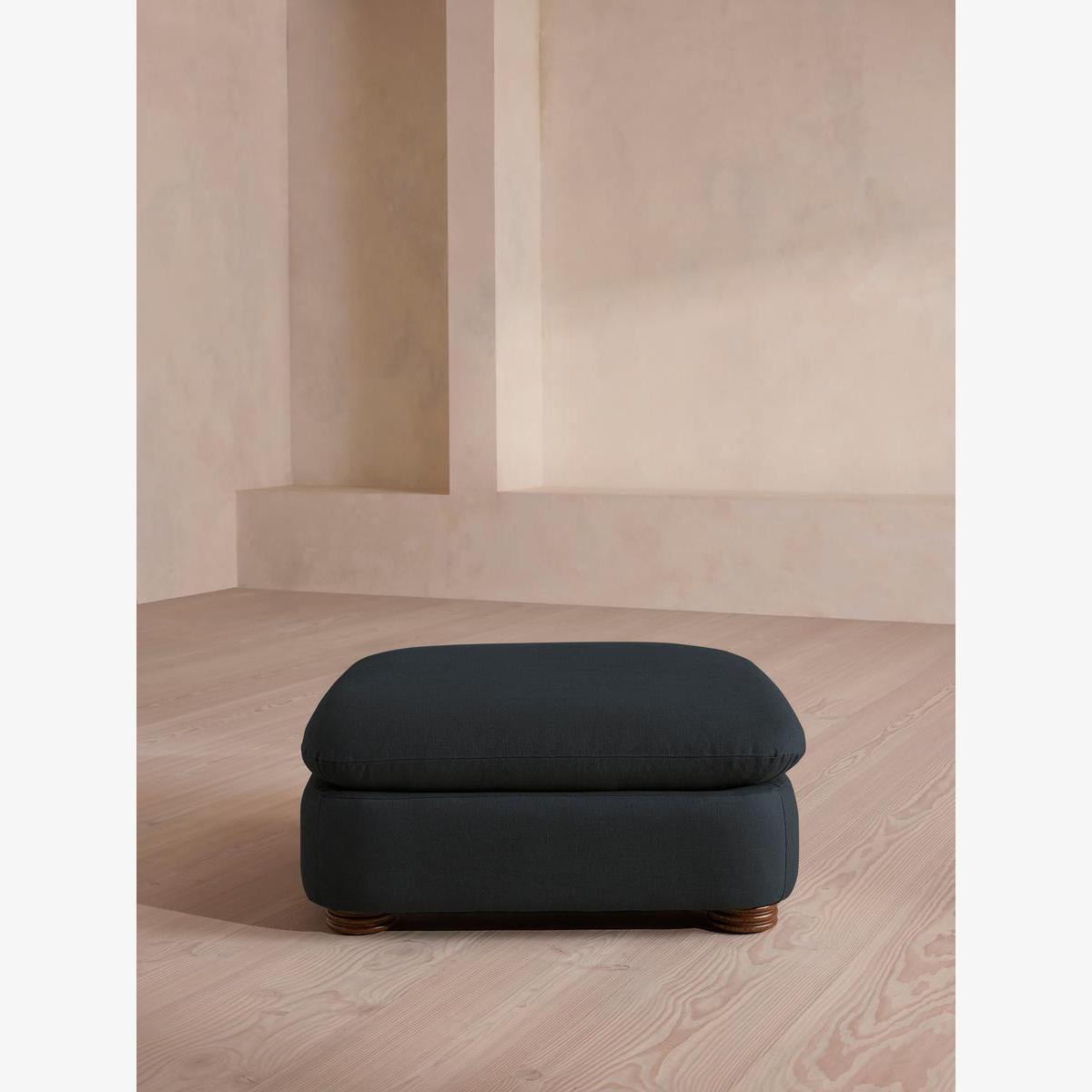 Designed to complement the Rava modular sofa, a square silhouette is softened by curved edges and wrapped in linen. Taking cues from the social spaces of Soho House Nashville, this ottoman is designed to complement the Rava modular sofa. Upholstered in linen that comes in our full made-to-order palette, its square silhouette is rounded at the corners for a soft, comfortable finish.