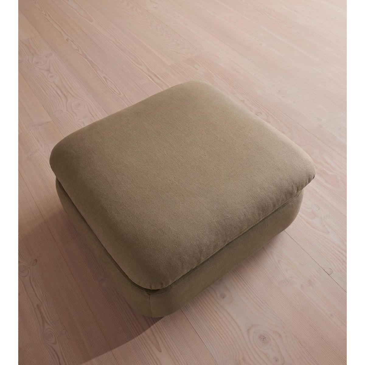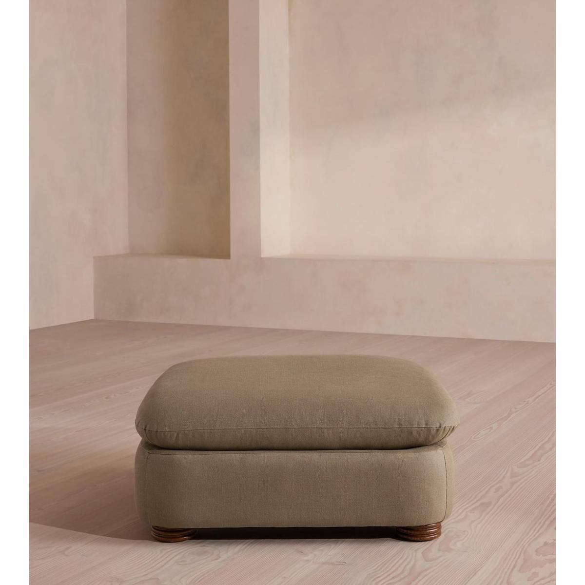 Designed to complement the Rava modular sofa, a square silhouette is softened by curved edges and wrapped in linen. Taking cues from the social spaces of Soho House Nashville, this ottoman is designed to complement the Rava modular sofa. Upholstered in linen that comes in our full made-to-order palette, its square silhouette is rounded at the corners for a soft, comfortable finish.