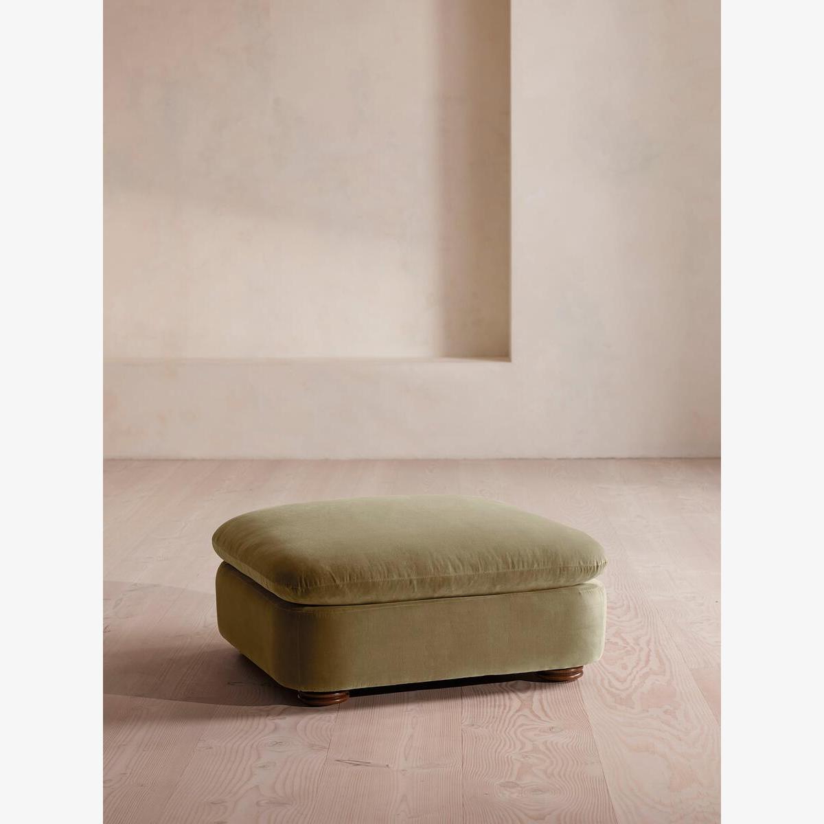 I’m a fan of the Rava ottoman in that muted lichen velvet - it feels both modern and inviting without shouting for attention. Its low, square form and subtle wooden base work equally well in a Scandi-inspired living room, a relaxed boho scheme or even a moody, dark-walled snug. For practical styling, try pairing it with a slim metal tray to turn it into an impromptu coffee table, or use it as extra seating next to a low bookcase. The green velvet ties in beautifully with natural timber tones, brushed brass accents or a simple jute rug, adding both texture and a gentle pop of colour.