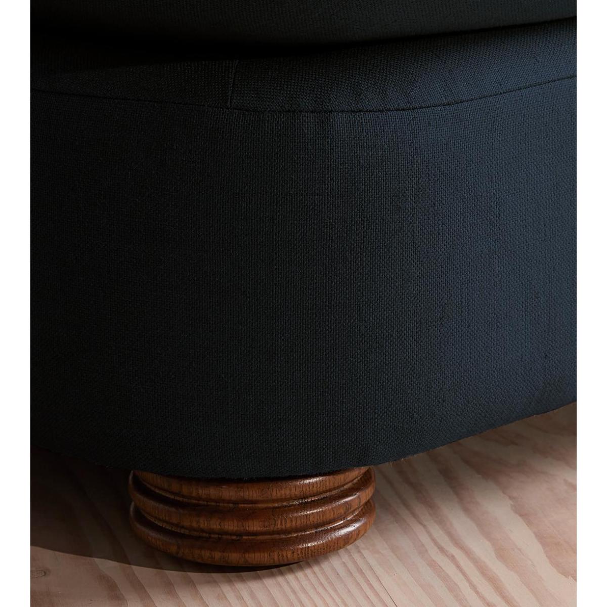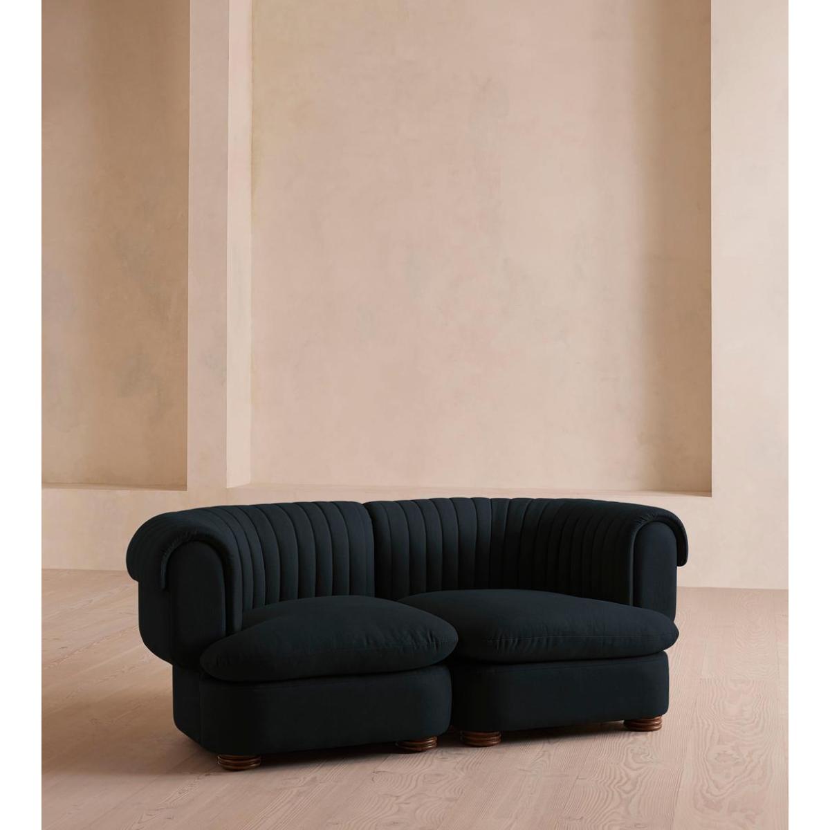 A soft, rounded three-seater silhouette with a fluted backrest is fully upholstered in linen. Fully wrapped in linen, the multi-functional Rava sofa is inspired by the social spaces in Soho House Nashville. Available fully formed or as separate modules, it pieces together with discrete crocodile clips to offer various seating arrangements to suit your own space.