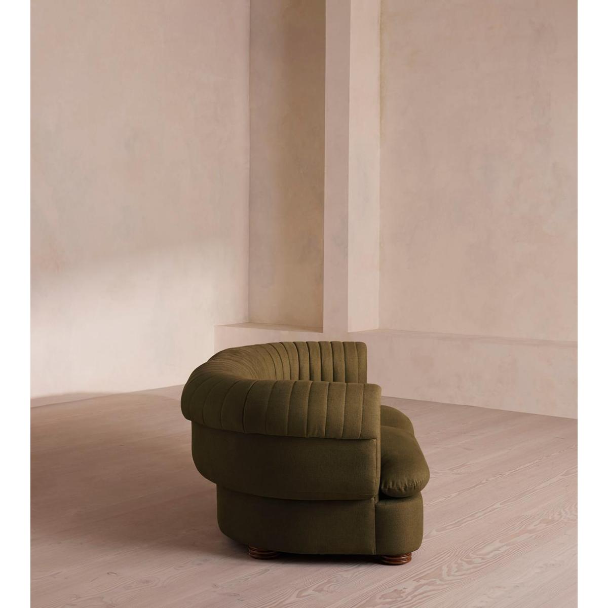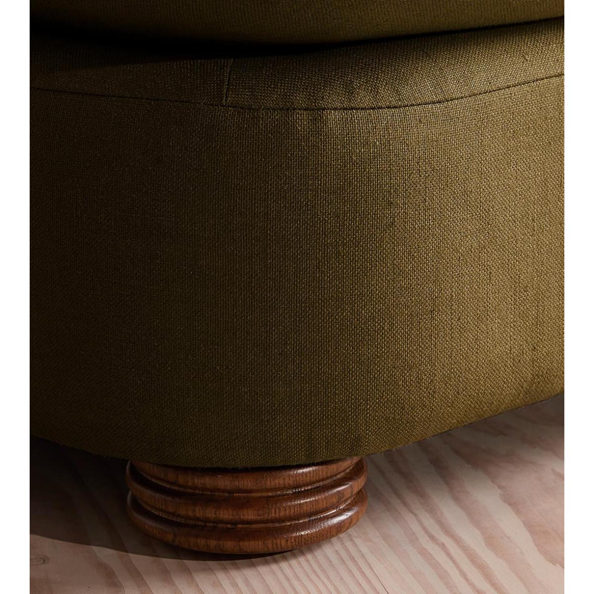 I love this sofa for its versatile, timeless appeal and the sophisticated olive linen fabric that adds a subtle touch of colour without overpowering a space. It works well in both relaxed and more formal interiors, especially in eclectic, modern, or vintage-inspired settings. To style it effectively, consider pairing it with neutral or textured soft furnishings and layered throws for extra comfort. Its classic silhouette makes it a great anchor piece in living rooms or lounges, and placing it near warm woods or brass accents enhances its rich, earthy tone. Practical tip: accessorise with patterned cushions or a statement rug to add personality while keeping the overall look cohesive.