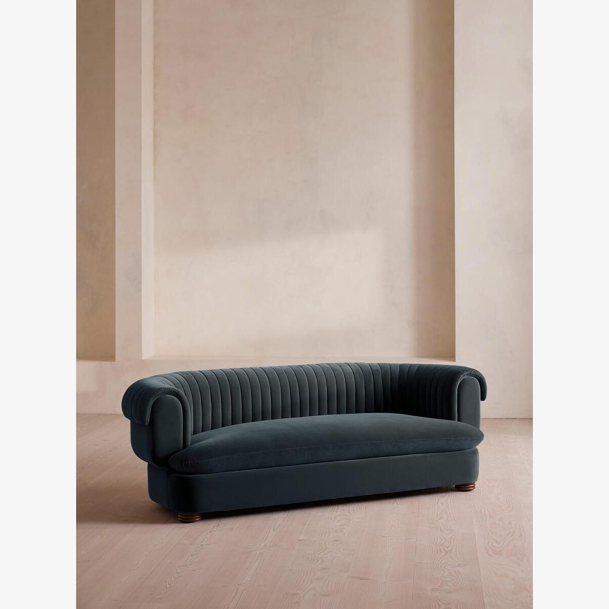 I love this grey-blue velvet three-seater for its clean curves and subtle sheen that lifts a room without overwhelming it. It suits contemporary, mid-century or even Scandi schemes thanks to the low profile and rolled arms that nod to Art Deco. For styling, layer cushions in different textures - think linen and boucle - to add depth, then anchor the look with a light-wood or marble coffee table. Keep accessories minimal and pick metals (brass or black) that tie in with your décor, and a neutral rug will let the sofa’s colour really come through.