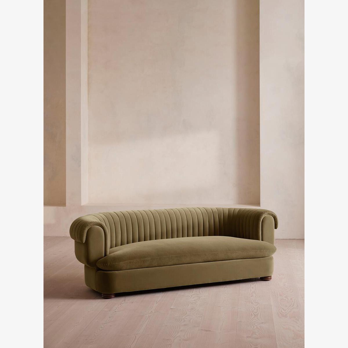 I love how this lichen velvet sofa blends a soft green tone with a streamlined, channel-back shape - it brings a refined yet relaxed feel to living rooms. Its low profile and subtle sheen work well in both modern Scandi schemes and more eclectic, curated spaces. For styling, anchor it with a warm timber coffee table and a wool rug in neutral shades to let the colour stand out without overwhelming the room. Add a couple of cushions in muted terracotta or deep charcoal to introduce contrast, and position a slimline floor lamp nearby for focused reading light.