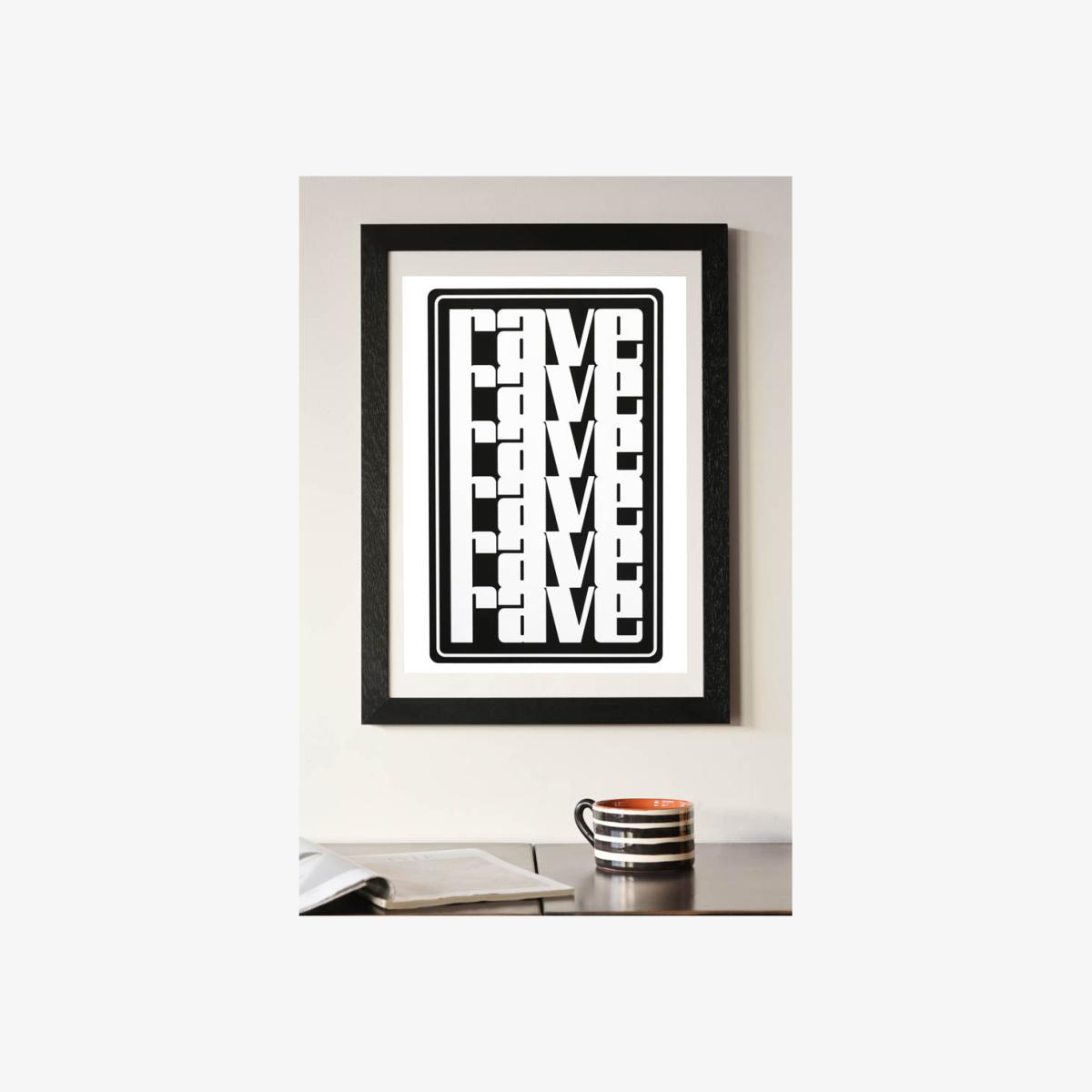 About The Rave A2 Art Print With Black Wooden Frame Typographic artwork is a great way to express yourself through and the Rave A2 Typographic Art Print With Black Wooden Frame is the perfect example of this. Designed with a super cool font and monochrome colour palette, the Rave A2 Art Print is the perfect piece to create a party vibe in your home. Measuring H42cm x W29.7cm, the art print is delivered in a matching black wooden frame. Why We Think You’ll Love The Rave Monochrome Art Print Monochrome typographic art is always on trend for home interiors. Playful and upbeat, the repeat of the word rave within the print conjures up electronic trance music that you can lose yourself in and dance the night away without a care in the world. This A2 print is stylish and cool...just like you are! Perfect for party lovers, the rave art print is a constant reminder to lose yourself in the music, dance and have fun. How to Style The Rave Wall Art Print Monochrome art suits nearly all décor styles and is an easy addition to the walls of your home. Whether you hang it on its own, as part of a picture wall or leant the print up on a shelf, this punchy upbeat art piece ensures your home is prepared for any opportunity to party.
