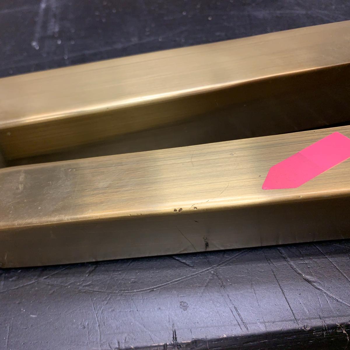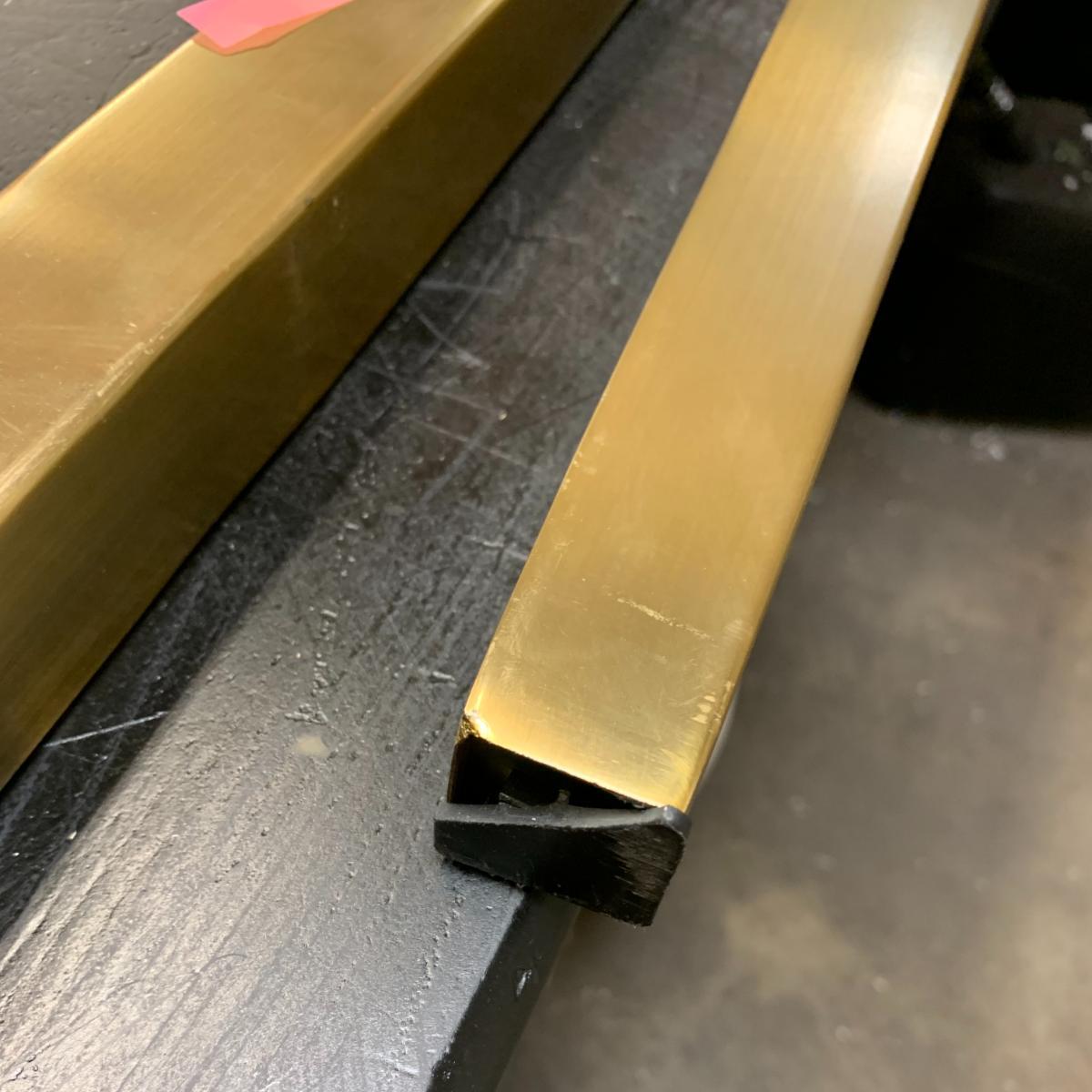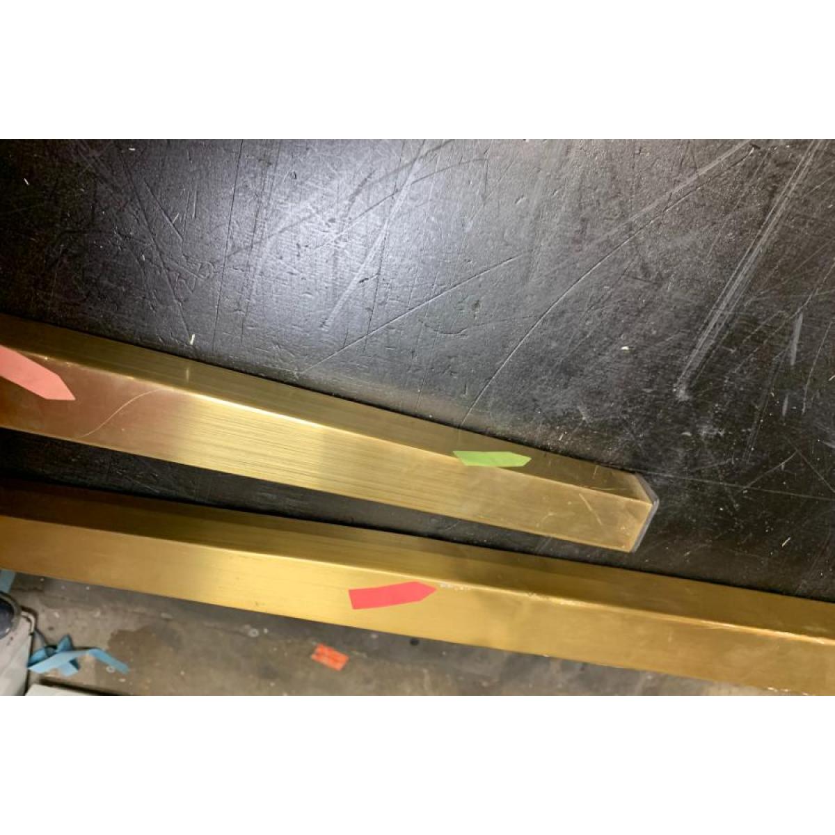 Frame hand crafted from steel with brass electro plated finish. Distinctive top finished with diamond pattern walnut veneer. Striking form inspired by mid-century Italian design. Will seat 6-8 people. Part of the complete Ravello living and dining room collection. Simple assembly required. Requires assembly. ITEM WITH ISSUES. Please Note: Items with issues can be returned as normal. However, they cannot be replaced with new for any reason. Please check photos for any issue(s). Packaging not new. Legs are marked or scratched. Top has scratches.