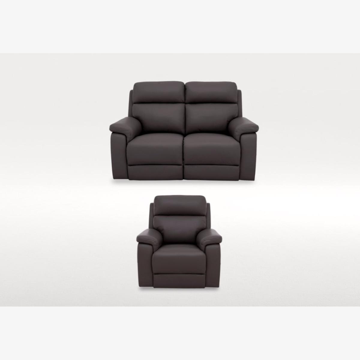 With our Raven range, nothing’s left to chance. This collection of sofas, armchairs and footstools deliberately brings together all the features that we know you love. Sofas and chairs have pocket-sprung seat cushions for extra comfort, high backs and padded arms for exceptional support, optional power recliners for added relaxation, and so much more. Even better, it’s all yours at a great-value price. Handcrafted exclusively for Furniture Village and offered in a huge choice of 100% leather and fabric upholstery options, the Raven collection makes it easy to furnish your living space in the most relaxing way possible. Superb power recliner comfort, excellent support and luxurious 100% leather upholstery – this two-seater sofa and armchair set has it all and for an unbeatable price. Why you’ll love it This fantastic leather sofa and armchair set is yours at a great-value price. With power recliners, body-hugging curves and high supportive backs. Pocket sprung seat cushion interiors for exceptional comfort. Foam cushioning throughout offers softness with support. 100% leather upholstery in a sophisticated dark grey. Handcrafted and only at Furniture Village. This leather 2-seater power recliner sofa and power recliner armchair set is part of our Raven range. What you need to know Medium comfort level. Seat suspension: sinuous springs. Seat cushioning: pocket spring, foam and Dacron. Seat cushioning is fixed. Back suspension: webbing. Back cushioning: foam and Dacron. Back cushioning is fixed. Arm cushioning: foam and Dacron. Back and feet are removable for ease of access. Please allow time for the recliner mechanism to ease. Minor gaps are necessary to ensure ease of motion and may be exaggerated depending on floor type. Fixed seat and back cushions require smoothing and straightening regularly. To smooth and straighten fixed cushions, punch the back cushion’s top two corners and the seat cushion’s outer two corners, and pinch outwards. Leather has unique marks and characteristics with variation in colour and texture. Leather softens with use. Smoothing the tops of leather cushions prevents signs of visual comfort. Please read our upholstery care guide for more advice. Item code: RAVEBUN-6-001