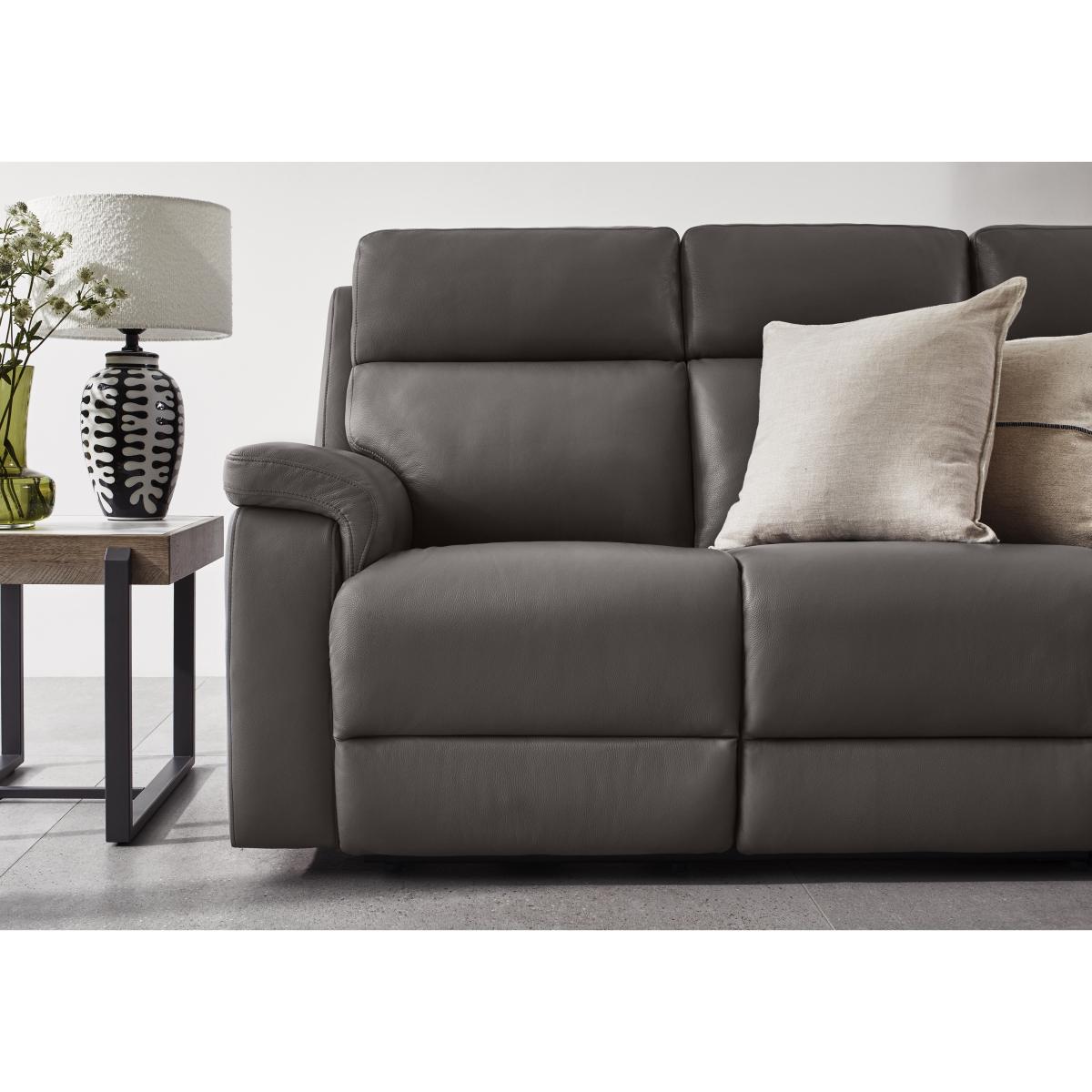 With our Raven range, nothing’s left to chance. This collection of sofas, armchairs and footstools deliberately brings together all the features that we know you love. Sofas and chairs have pocket-sprung seat cushions for extra comfort, high backs and padded arms for exceptional support, optional power recliners for added relaxation, and so much more. Even better, it’s all yours at a great-value price. Handcrafted exclusively for Furniture Village and offered in a huge choice of 100% leather and fabric upholstery options, the Raven collection makes it easy to furnish your living space in the most relaxing way possible. Superb power recliner comfort, excellent support and luxurious 100% leather upholstery – this three-seater and two-seater sofa set has it all and for an unbeatable price. Why you’ll love it This fantastic set of two leather sofas is yours at a great-value price. With power recliners, body-hugging curves and high supportive backs. Pocket sprung seat cushion interiors for exceptional comfort. Foam cushioning throughout offers softness with support. 100% leather upholstery in a sophisticated dark grey. Handcrafted and only at Furniture Village. This leather 3-seater and 2-seater power recliner sofa set is part of our Raven range. What you need to know Medium comfort level. Seat suspension: sinuous springs. Seat cushioning: pocket spring, foam and Dacron. Seat cushioning is fixed. Back suspension: webbing. Back cushioning: foam and Dacron. Back cushioning is fixed. Arm cushioning: foam and Dacron. Back and feet are removable for ease of access. Please allow time for the recliner mechanism to ease. Minor gaps are necessary to ensure ease of motion and may be exaggerated depending on floor type. Fixed seat and back cushions require smoothing and straightening regularly. To smooth and straighten fixed cushions, punch the back cushion’s top two corners and the seat cushion’s outer two corners, and pinch outwards. Leather has unique marks and characteristics with variation in colour and texture. Leather softens with use. Smoothing the tops of leather cushions prevents signs of visual comfort. Please read our upholstery care guide for more advice. Item code: RAVEBUN-2-001