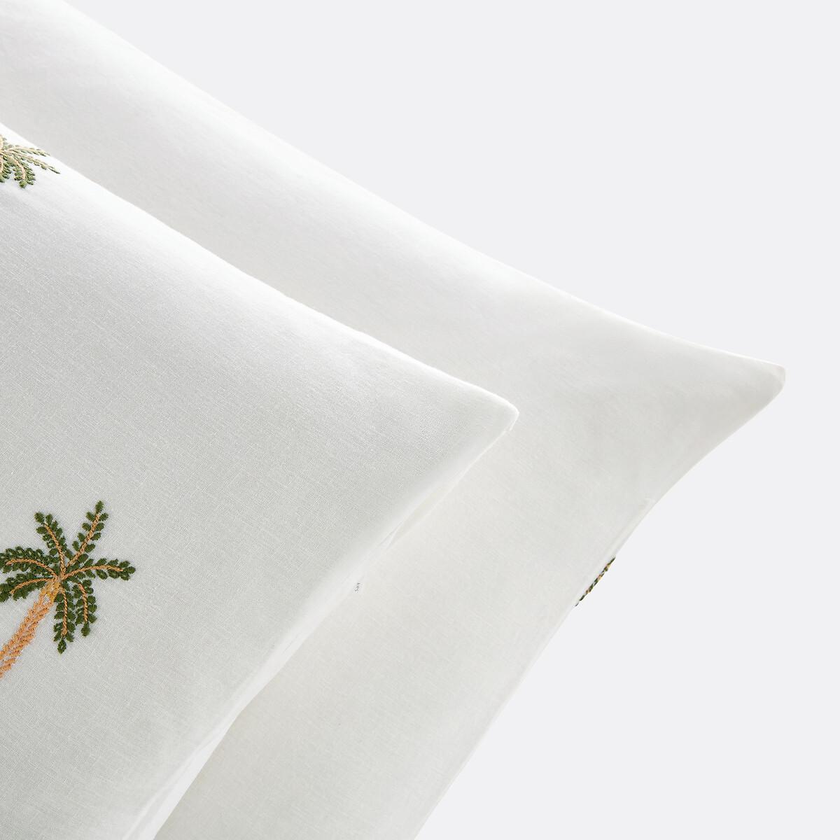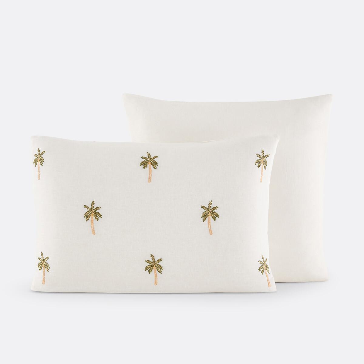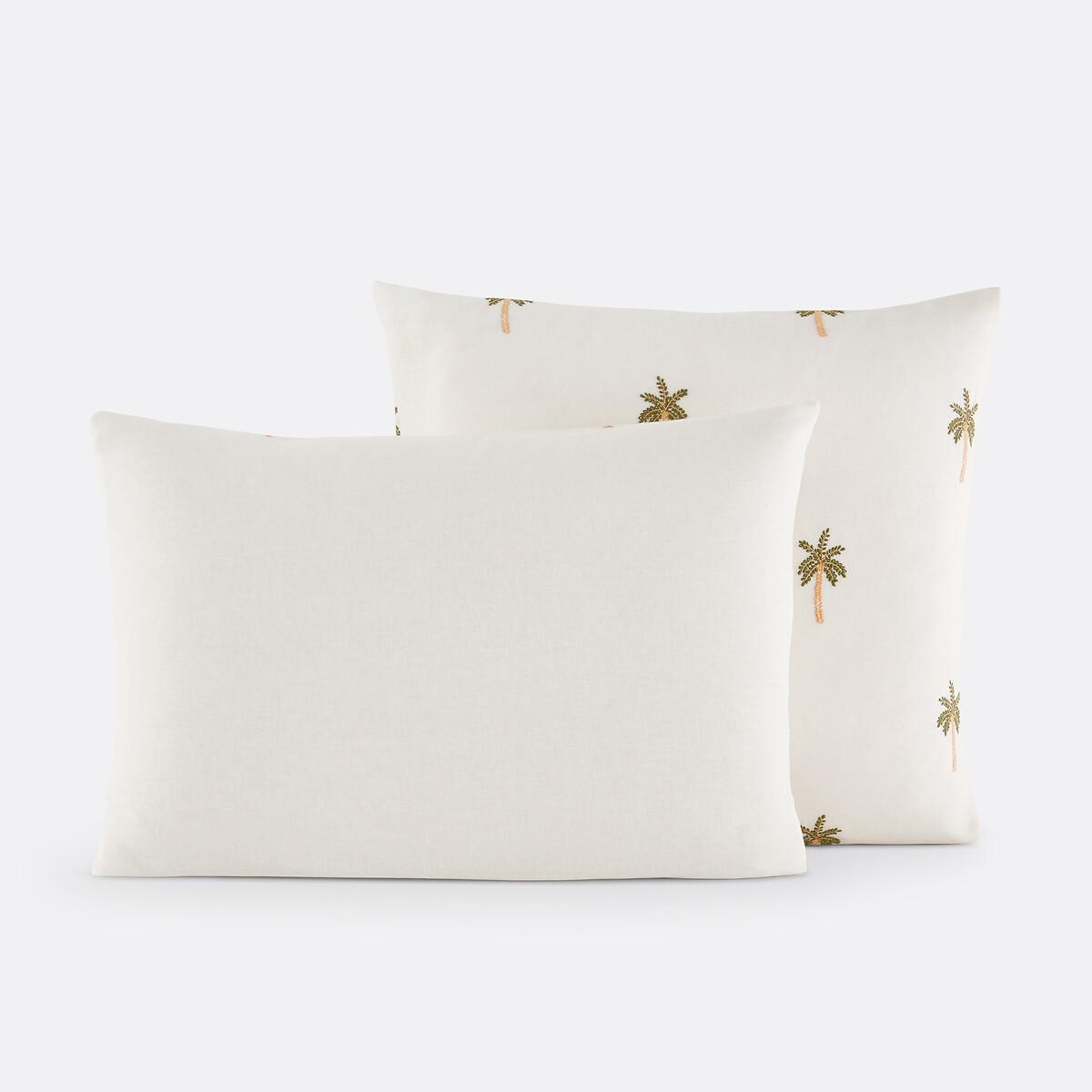The Ravenel cotton and linen set features stylised and embroidered palm trees... A La Redoute Interiors creation. Washed cotton/linen combines the softness and suppleness of cotton with the raw appearance of linen. Its slightly wrinkled appearance is incredibly on-trend, and it does not require ironing. Product Details • 50% cotton, 50% linen • Pre-washed fabric • One side embroidered palm trees,one side plain Match this item with the rest of the bedding in the range for a stylish bedroom. And you can mix and match it with different colours and styles from our other bedding ranges when you want to change things up and create your own unique look.. Care Advice • Machine washable at 60°C • By washing your laundry at 40°C instead of 60°C, you limit energy consumption. Dimensions • 63 x 63cm: Square pillowcase • 50 x 70cm: Rectangular pillowcase • 65 x 100cm: Rectangular pillowcase • OEKO-TEX® Standard 100. Standard 100 certification by OEKO-TEX® tests textile products for harmful substances via an independent, international label.