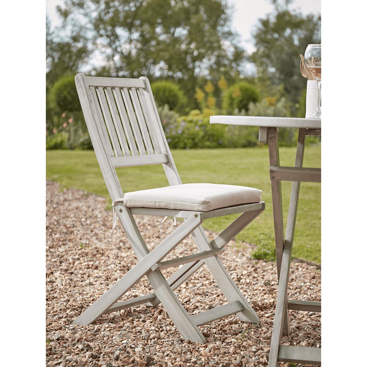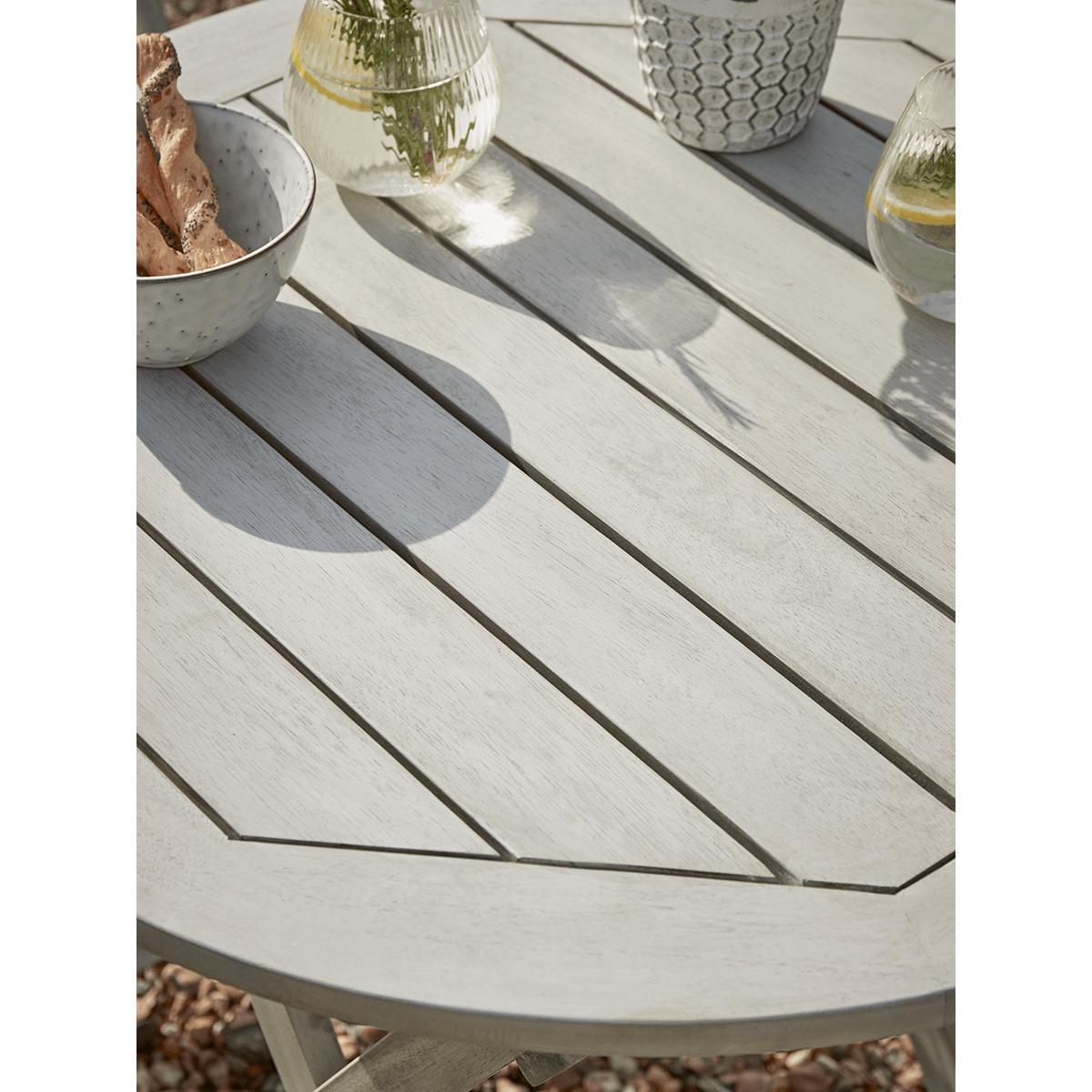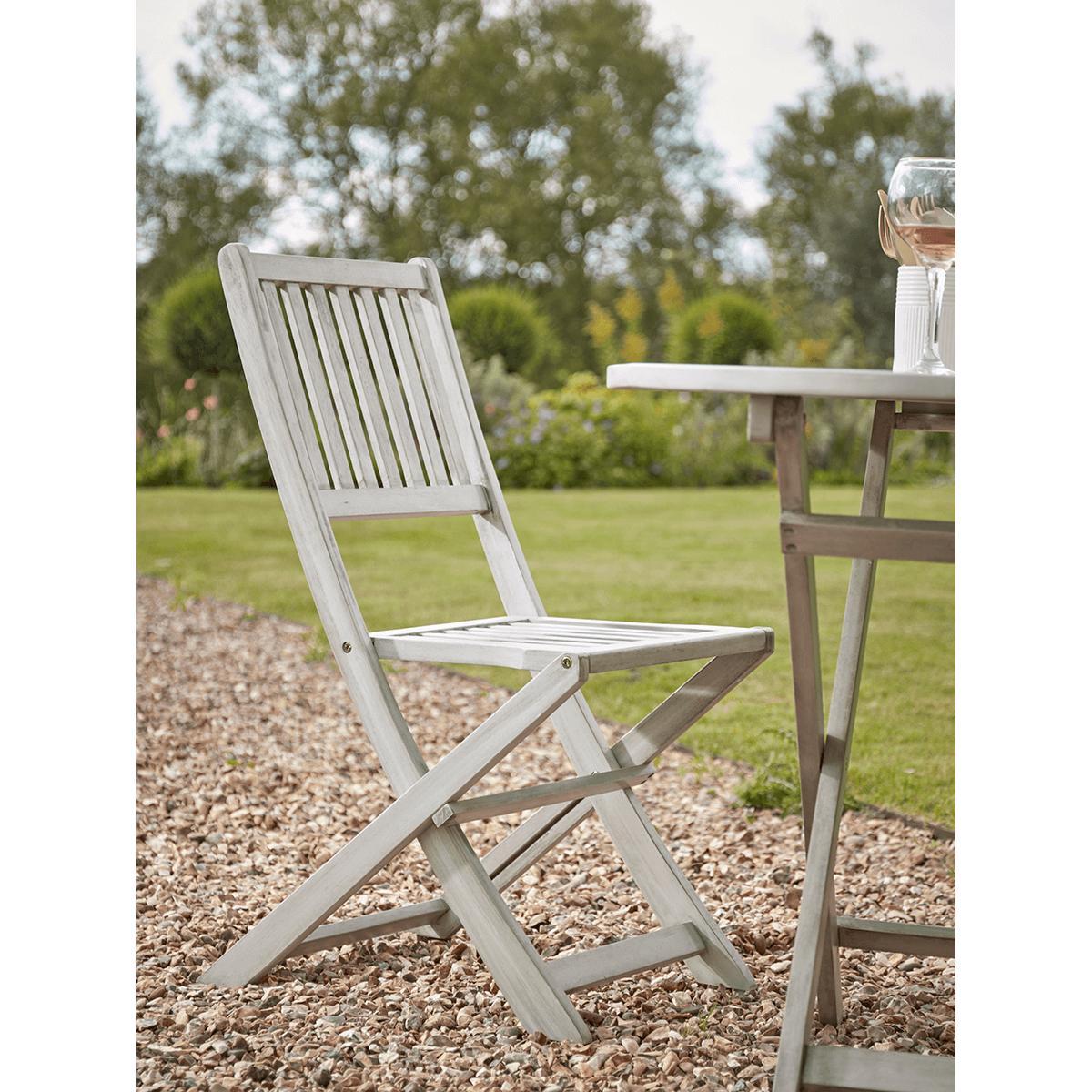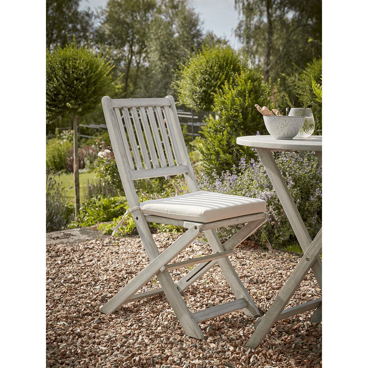 Please accept our apologies, this much loved item is currently sold out. Simple and classic, the perfect fit for a country garden, our Ravenna Bistro Set is made from acacia wood with a washed finish and elegant slatted design. Each with a small round table and two chairs, its perfect for intimate dinners and catching up with friends and can be folded away when not in use.