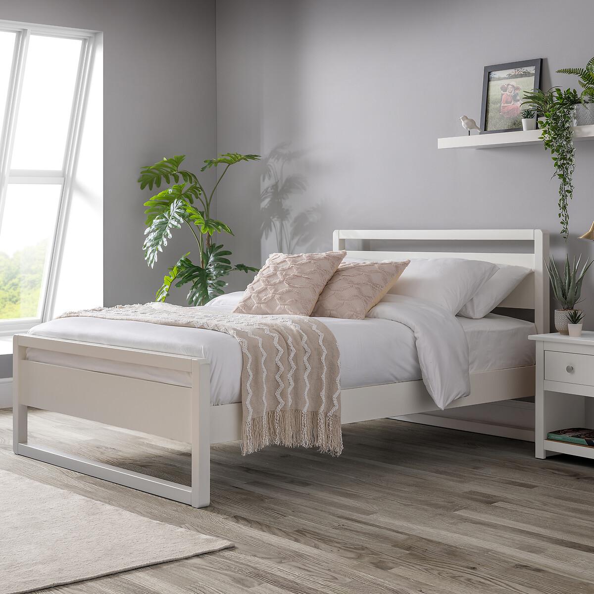 Minimalist design yet solid construction with a simple and classic headboard, the Ravenna bed has a unassuming design which will fit into most bedroom styles. Product details • Pine and MDF frame • Wooden slats included • Assembly required (recommended 2 person) • Fixings supplied • 12 month manufacturers warranty • Mattress not included • Compatible with UK standard size single mattresses (190 cm x 90 cm), and UK standard size double mattresses (190 cm x 135 cm)Product Composition - 95% Wood, 5% Metal. Product Dimensions Double 200 cm x 144 cm x 100 cm , Weight - 46 KGPackaged Dimensions. Double: Parcel 1 Packaged Dimensions - 147 cm x 103 cm x 10 cm, Weight 38 kg Parcel 2 Packaged Dimensions - 192.2 cm x 22.6 cm x 4.2 cm, Weight 9.6 kg. This product will be dispatched by one of our trusted suppliers. You’ll be contacted by their selected courier about your delivery. Please note: this product cannot be delivered to all Offshore Islands, Northern Ireland or Republic of Ireland.