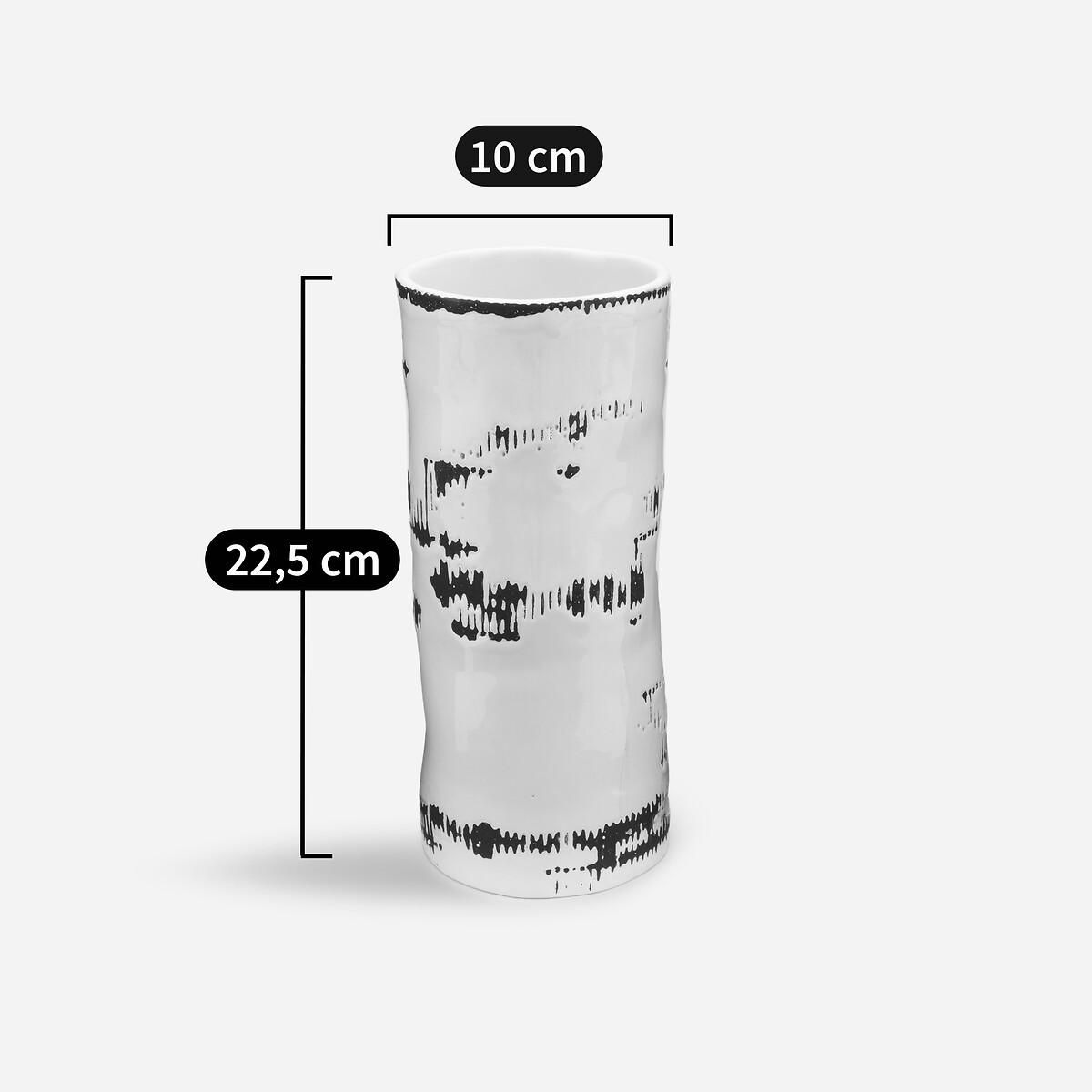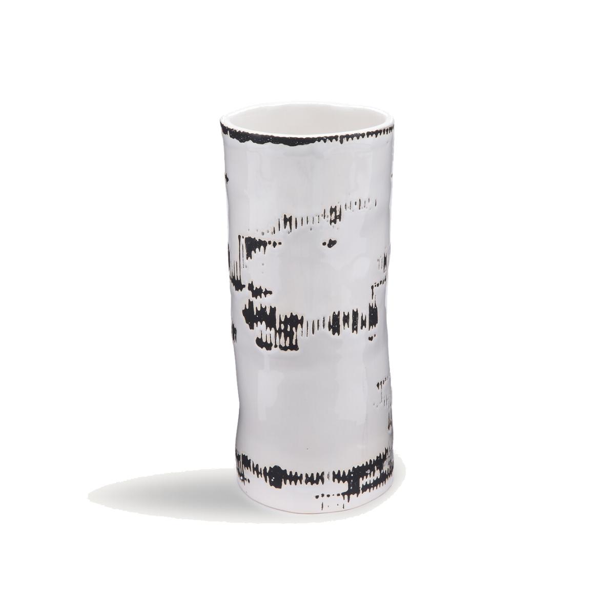 As if unearthed from the four corners of the earth by a passionate collector, these handcrafted ceramic vases make up a unique selection that highlights each shape with touches of vibrant colour: turquoise, lime and black and white. The Raw vase is part of the "Nomad Escape" collection designed by Otto, the studio founded by architect and designer Paola Navone. Led by Cristina Pettenuzzo and Domenico Diego, this collection has a bold and unique identity, transforming the home into an bright and positive oasis of well-being for all seasons. Product Details • Ceramic body. A sparkly white glaze is applied to the surface of the matt black ceramic vase • Hand-made in Portugal: each piece is unique, and colours may vary from one vase to another. Care Advice • Ceramic is a solid material resistant to shocks, scratches and stains.. It can be cleaned with a damp sponge. Dimensions • Width: 9cm/3.5" • Height: 22.5cm • Depth: 10cm/4" • MADE IN PORTUGAL.Parcel Dimensions • 1 parcel • W9 x H22.5 x D10cm. 1.9kg