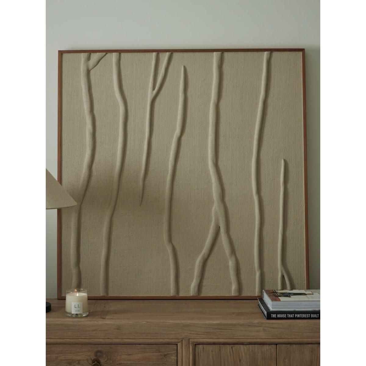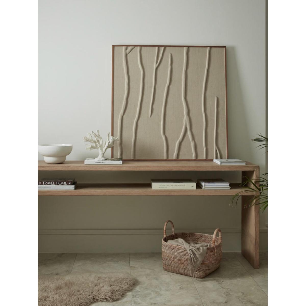 This beautiful and intricately handmade piece of Raya wall art has been made using natural jute to create a delicate design of branches. The neutral toned colour finish ensures that this investment pieces is both timeless and elegant. Finished with a complimentary wooden frame which enhances the high quality of this wall art. Hang using the pre-mounted hooks or prop against your console for a more modern look.