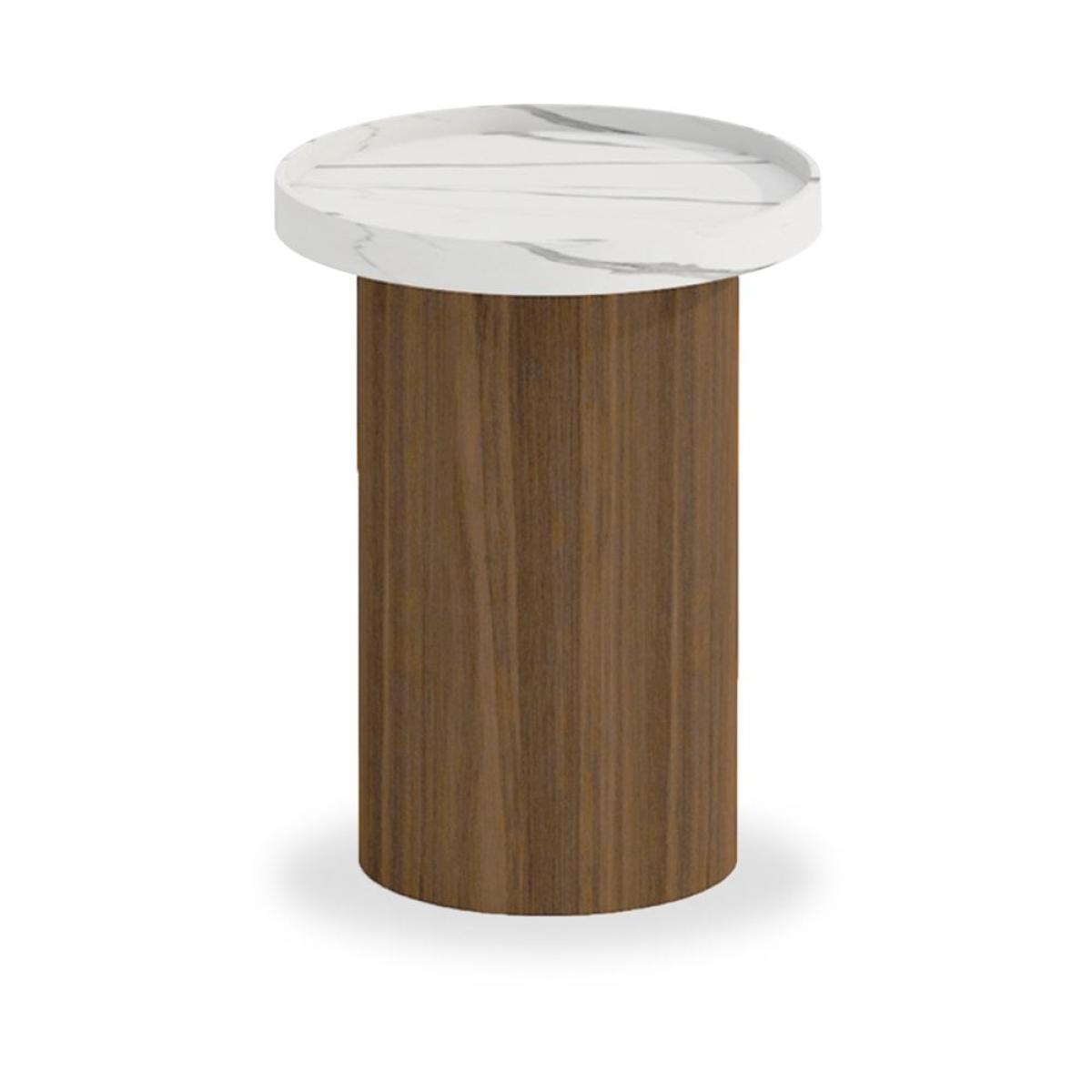 This side table is a versatile piece that works well in both contemporary and traditional interiors. I love the contrast between the marble effect top and the walnut base-it adds a sophisticated touch without feeling too formal. It’s perfect for smaller spaces or as an accent piece in a Living Room or bedroom, offering both functionality and style. For styling, I suggest pairing it with minimalist accessories like a small lamp or a decorative vase to keep the look clean and modern. It also lends itself well to layering with textured textiles or greenery nearby for a relaxed, welcoming vibe. Overall, it’s a smart blend of materials that can elevate a variety of schemes.