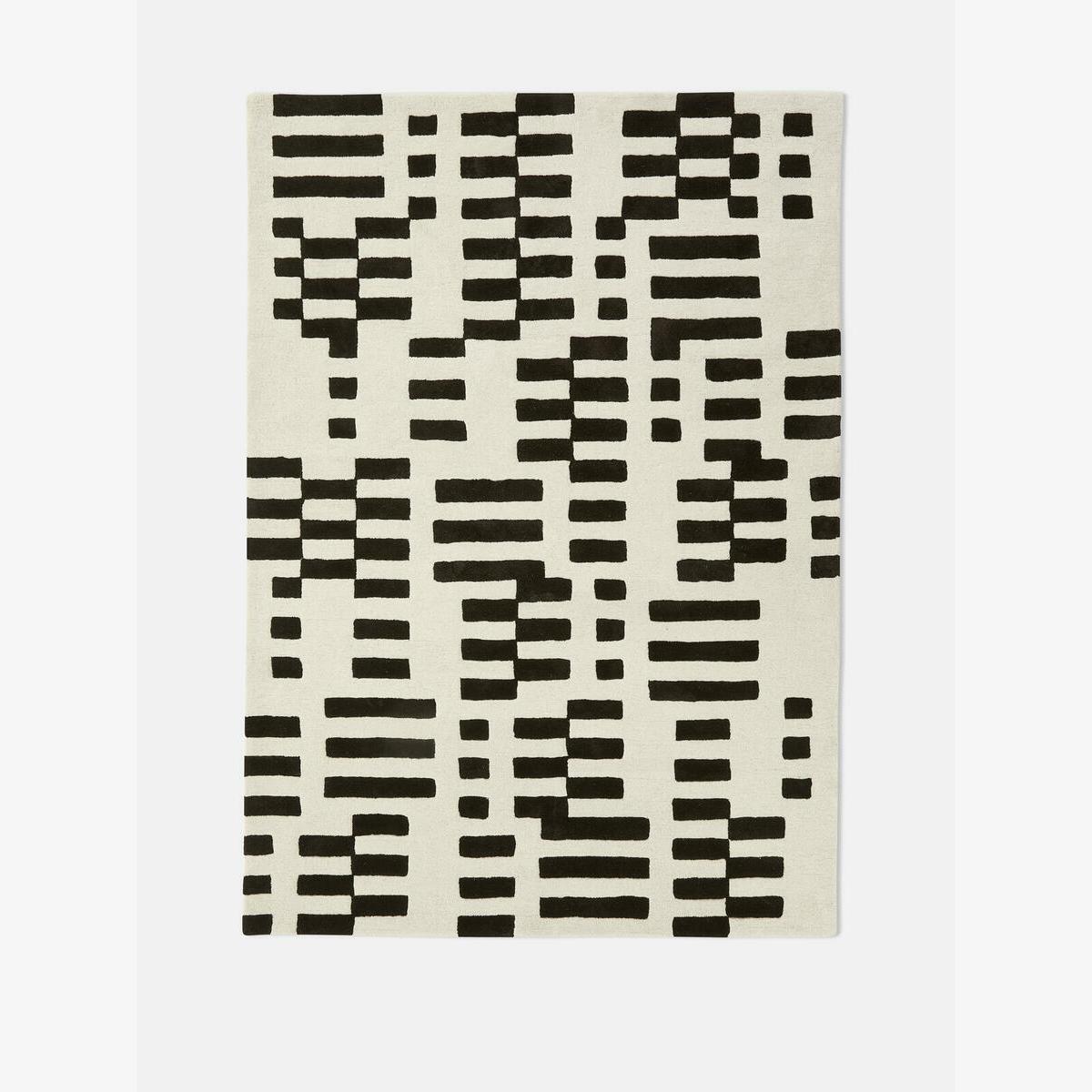 Referencing the graphic geometrics at White City House, the Raya rug features an irregular, bold linear pattern designed by our in-house team. The hand-drawn pattern has been transferred onto the rug using a hand-tufting technique, with a contrasting wool and viscose pile to create interesting texture and sheen. Place the rug under a sofa, bed or dining table to echo the vintage-inspired styles seen at our west London House. Wool and viscose rug Bold geometric design Hand-drawn geometric pattern Designed in-house Available in four sizes Available in Black and Rust Inspired by White City House