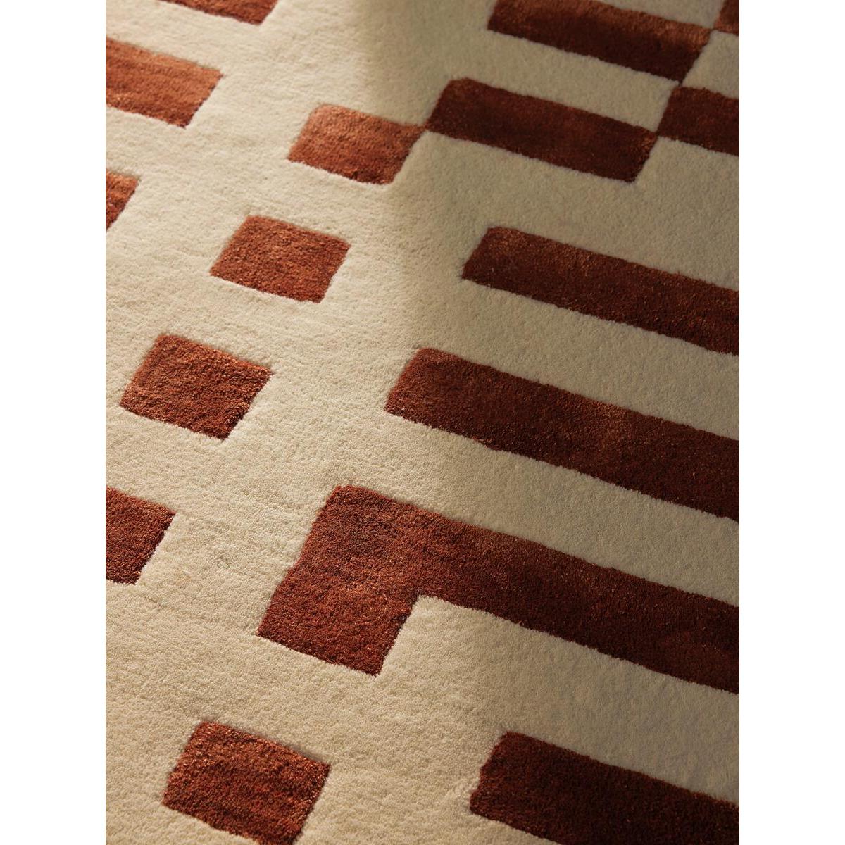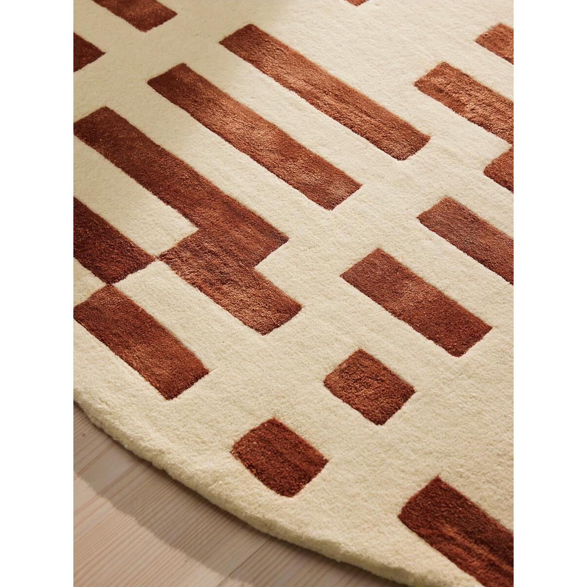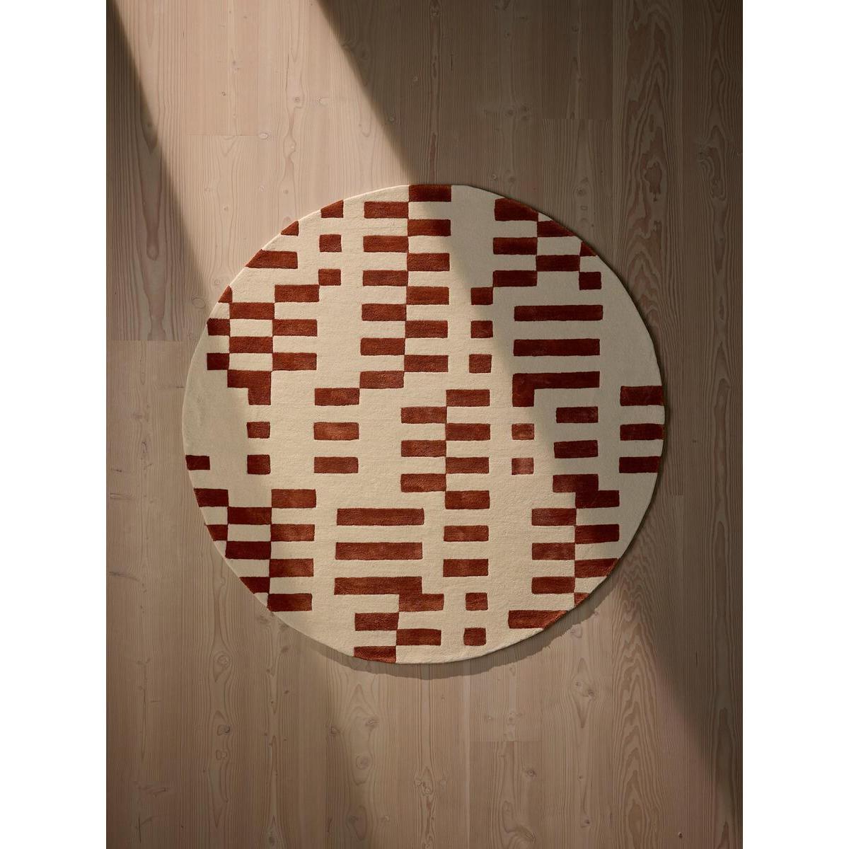 Referencing the graphic geometrics at White City House, the Raya rug features an irregular, bold linear pattern designed by our in-house team. The hand-drawn pattern has been transferred onto the rug using a hand-tufting technique, with a contrasting wool and viscose pile to create an interesting texture and sheen. Place this round style underneath an entry table such as the Tadwick, or under a round dining table such as the Lowden, as we would in our Houses. Round rug Hand-drawn geometric pattern Designed in-house An extension of our Raya rug range Available in Black and Rust Inspired by White City House