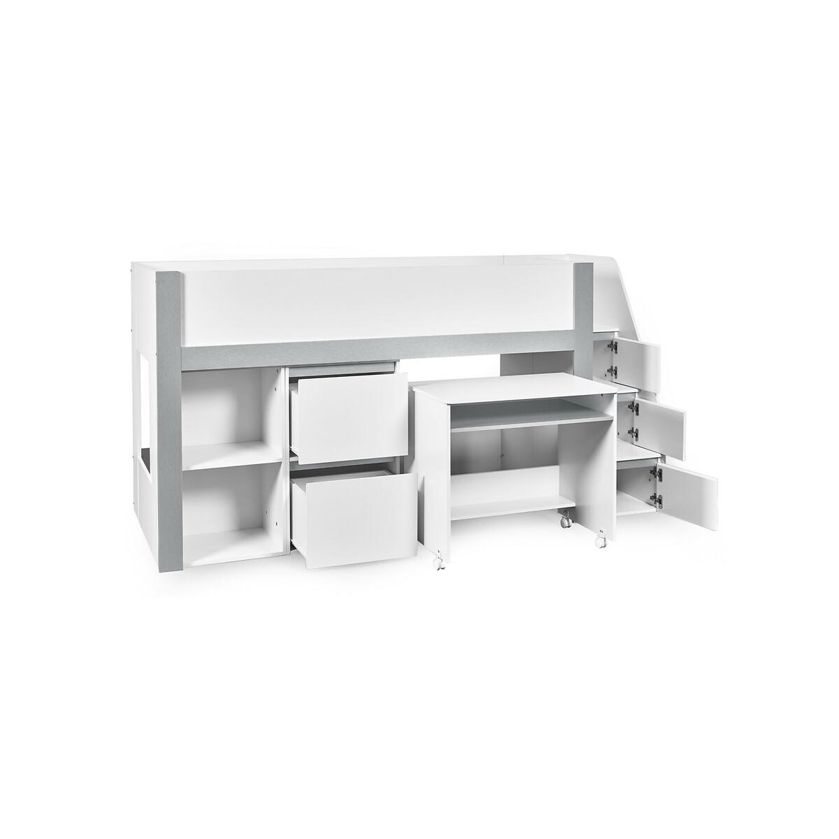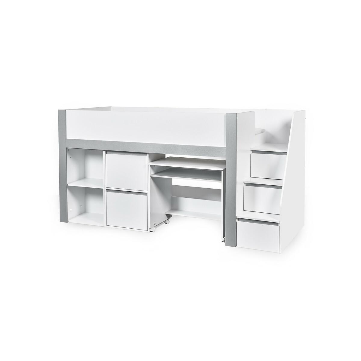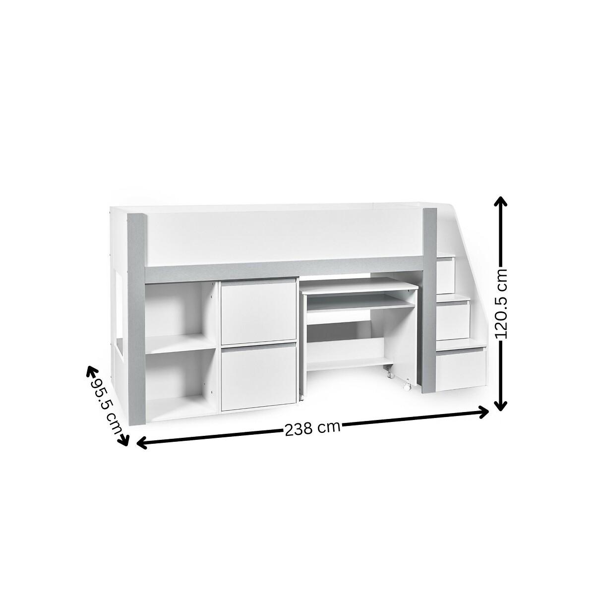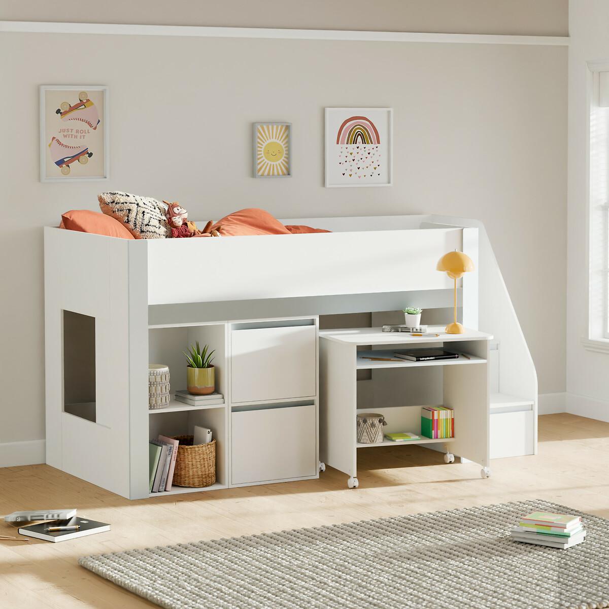 Make the most of their room with this functional mid sleeper bed, designed to combine sleep, study and storage in one clever design. Perfect for more compact bedrooms, a pull-out desk on smooth castors, integrated drawers and open shelving provide plenty of space for books, toys and school supplies. The fixed ladder also features hidden cupboard storage, making it a practical solution without taking up extra space. Solidly crafted from durable wood, this bed is built to last them through the years. Product Details • Bedroom system with integrated bed, pull-out desk, drawers, and open shelving compartments • Fixed ladder with hidden cupboard storage • Sturdy wood construction • Poplar slats • Integrated drawers • Full assembly required • 12 month manufacturers warranty • Care advice - Wipe with a clean damp cloth. Product Composition - 99% Wood, 01% Metal. Product Dimensions Single 95.5 cm x 238 cm x 120.5 cm , Weight - 155.7 KGPackaged Dimensions. Single: Parcel 1 Packaged Dimensions - 133 cm x 47 cm x 17 cm, Weight 36.4 KGParcel 2 Packaged Dimensions - 126 cm x 110 cm x 8 cm, Weight 37.2 KGParcel 3 Packaged Dimensions - 202 cm x 48 cm x 10 cm, Weight 27.2 KGParcel 4 Packaged Dimensions - 104 cm x 45 cm x 19 cmcm, Weight 32.6 KGThis product will be dispatched by one of our trusted suppliers. You’ll be contacted by their selected courier about your delivery. Please note: this product cannot be delivered to all Offshore Islands, Northern Ireland or Republic of Ireland.