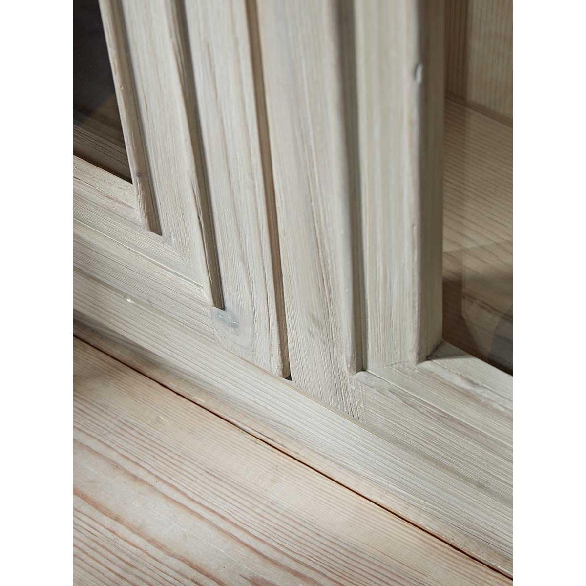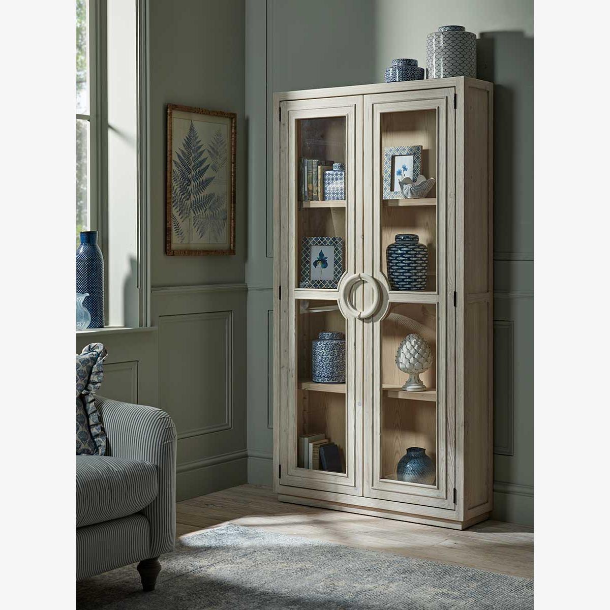Display your favourite photos, accessories and dinnerware in our Rayen Storage Cabinet. A sophisticated frame that oozes elegane and simplicity works with the neutral tones of the wood to create a cabinet that is the perfect addition to our French Blue collection. With four glass panels that front the doors, this cabinet is finished with two semi-circle shaped handles which add a softeness to the strong frame.