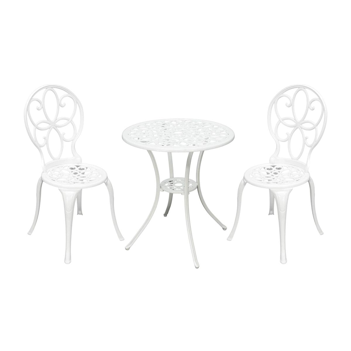 Add elegance and comfort to your outdoor space with the Signature Homes Gardens Cast Aluminium Bistro Set. This stunning set is perfect for relaxing in your garden or conservatory this spring and summer. The set is crafted from powder-coated cast aluminium, providing a sleek finish and enhanced rust protection for lasting durability. The cream seat pad cushions add comfort, making it ideal for long hours of relaxation, while the parasol hole in the table allows you to add a parasol for shade when needed. The adjustable feet offer stability, even on uneven surfaces, ensuring your furniture stays steady and secure. The set is easy to assemble with the included fixings, and it comes in three colour variants to suit different styles. The black powder-coated table and white powder-coated chairs offer a modern contrast that will enhance any outdoor setting.