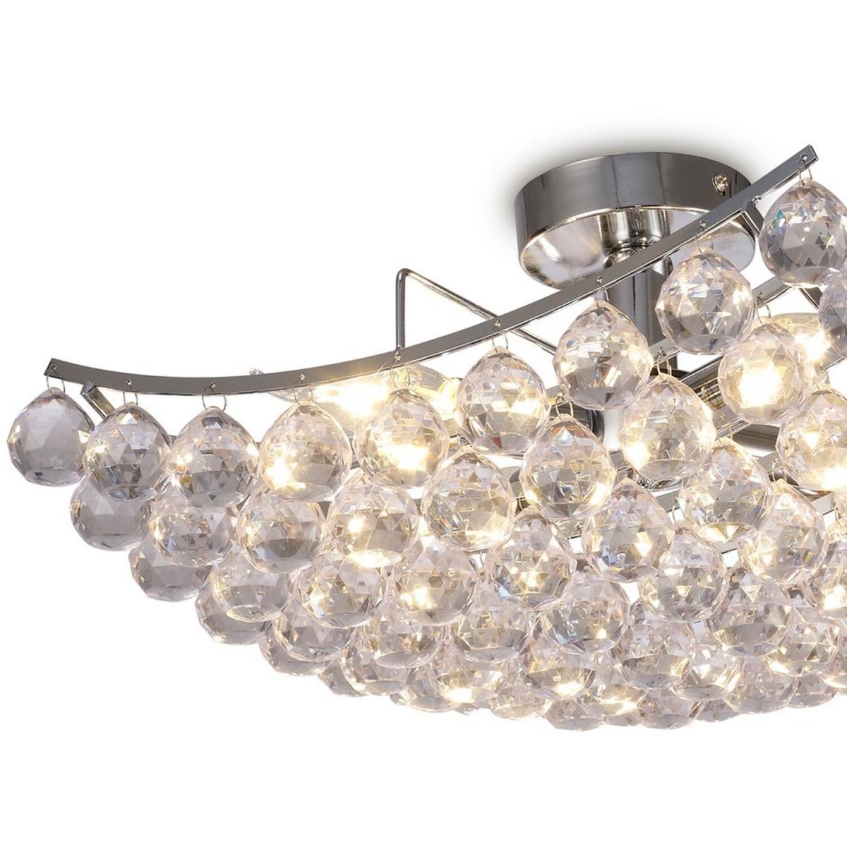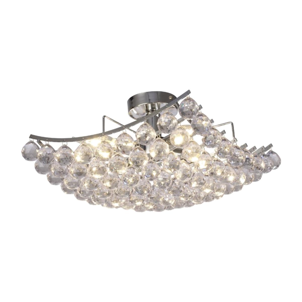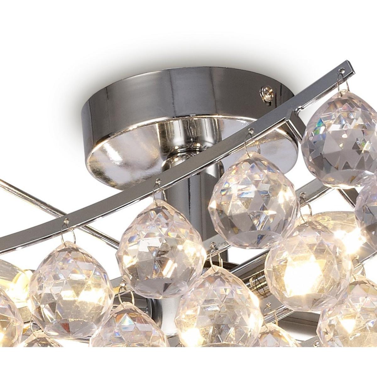 An extravagant, stunning yet affordable polished chrome fitting filled with an abundance of facetted acrylic spheres. This semi flush fixture which creates a basket of spheres has been designed in order to create an exquisite sheet effect. These spheres obscure the 4 x E14 lampholders throwing intricate shadows when illuminated. This is a desirable cost effective chandelier.