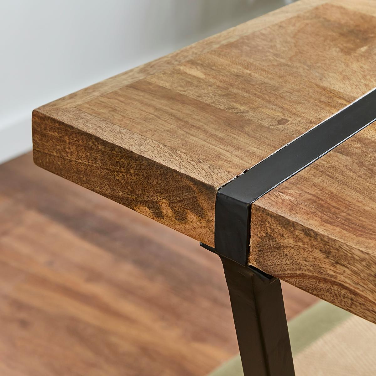 This table is not just functional; it's a stunning feature piece. The unique design features metal legs that seamlessly run through the tabletop, creating an eye-catching fusion of materials. The industrial aesthetic is balanced with a touch of elegance, making it suitable for a variety of decor styles.
