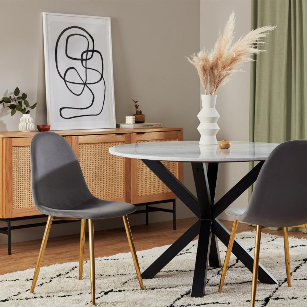 I love this dining chair for its sleek, contemporary look and versatile colour palette. The grey velvet upholstery adds a touch of softness and luxury, making it suitable for both modern and transitional interiors. The brass legs introduce a subtle metallic contrast that elevates the overall aesthetic without overpowering. This chair works particularly well in schemes that blend modern minimalism with luxe touches, such as muted colour palettes with brass accents, or in eclectic settings that mix textures and materials. For styling tips, consider pairing it with a marble or wooden dining table to highlight the leg detail, and add cushions or throws in complementary colours for comfort and visual interest. It’s a chic choice for elevating everyday dining spaces.